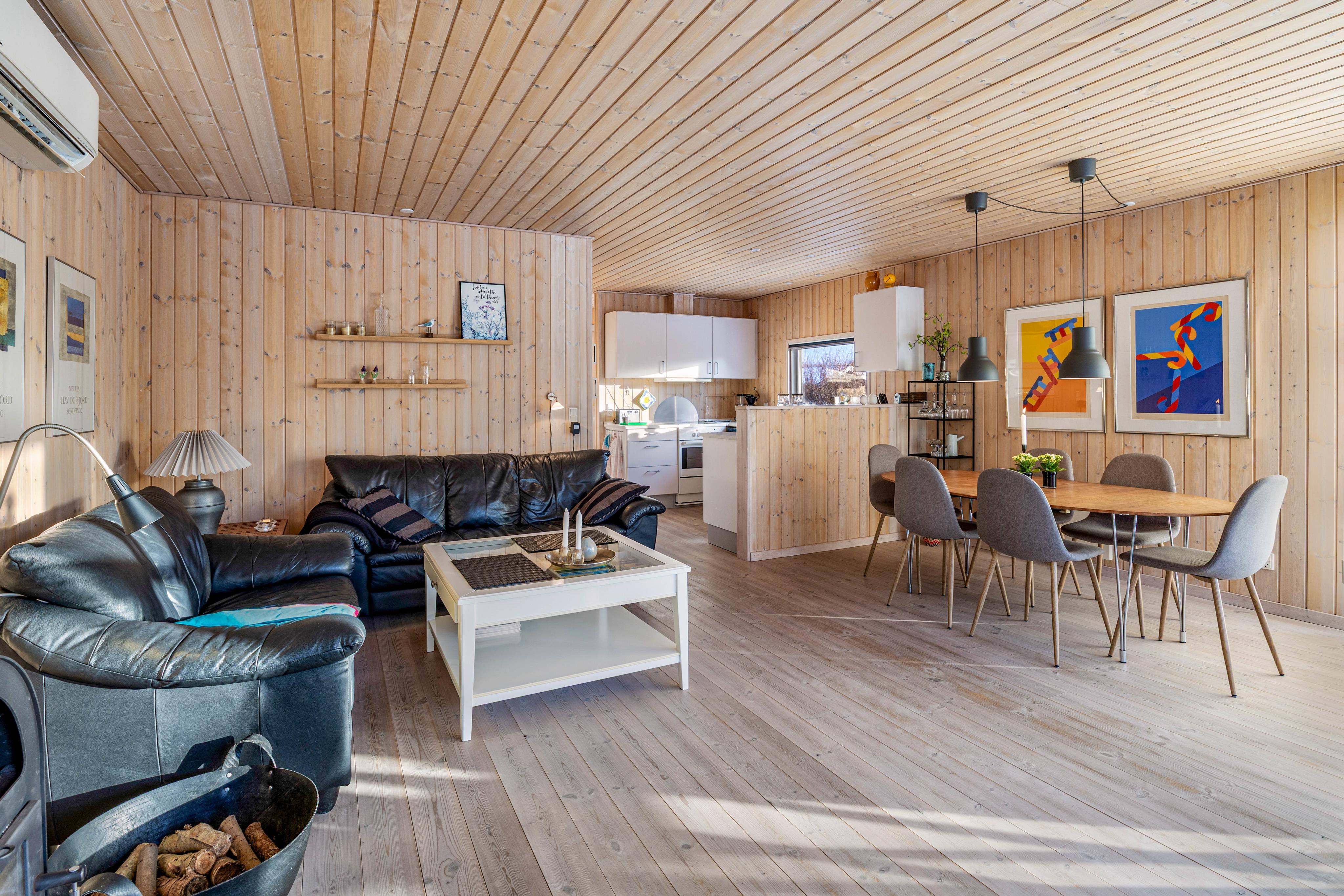 Das Ferienhaus besticht durch ein offenes Wohnkonzept, wo ihr eure Zeit gemeinsam verbringen könnt, ob beim gemeinsamen Kochen, wo ihr der Spülmaschine den Abwasch überlassen könnt oder am angrenzenden Esstisch wo ihr spannende Spieleabende veranstalten könnt. Im Wohnbereich könnt ihr euch auf gemütliche Abende vor dem Kaminofen freuen, während die moderne Wärmepumpe auch an kalten Tagen für angenehme Temperaturen sorgt.