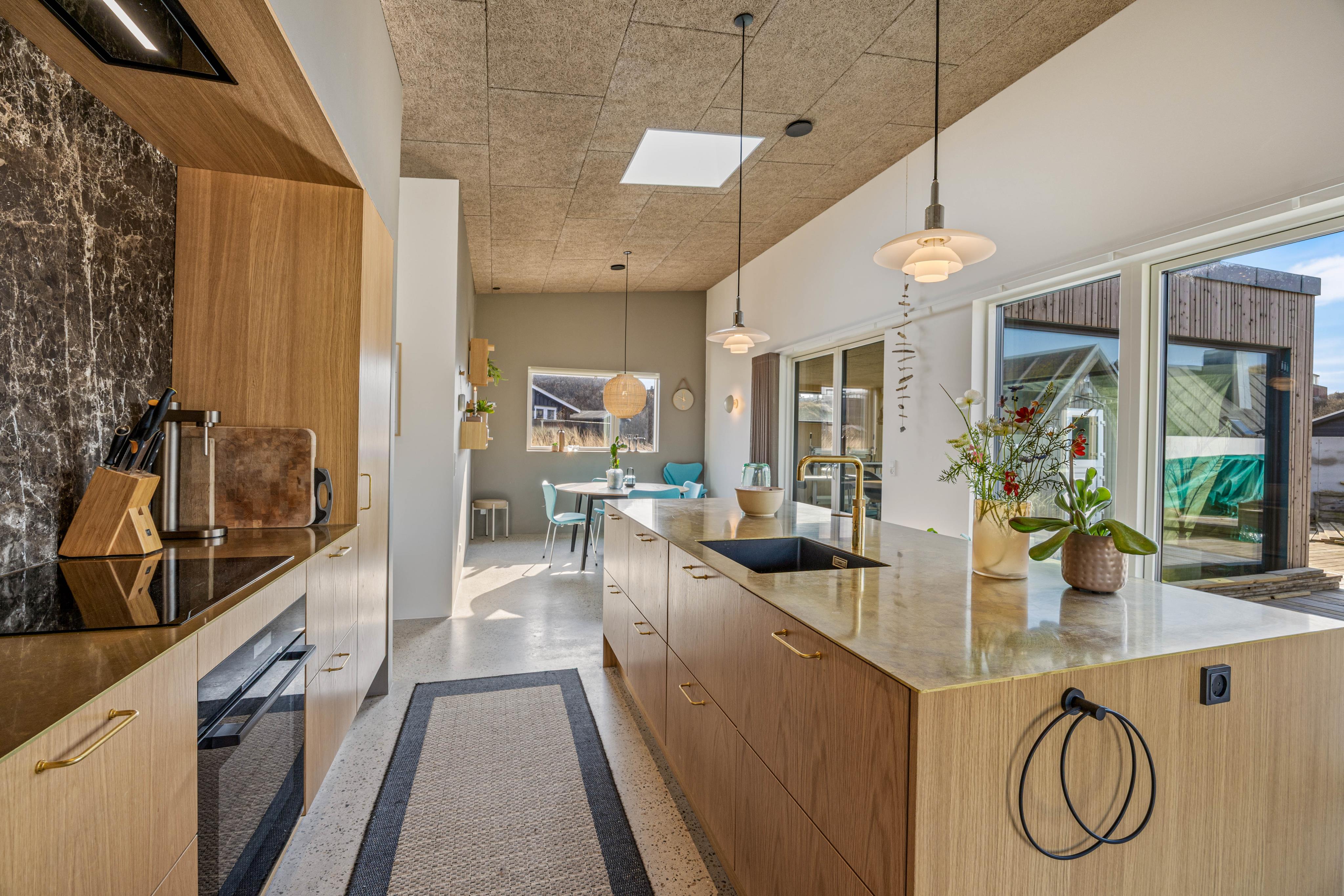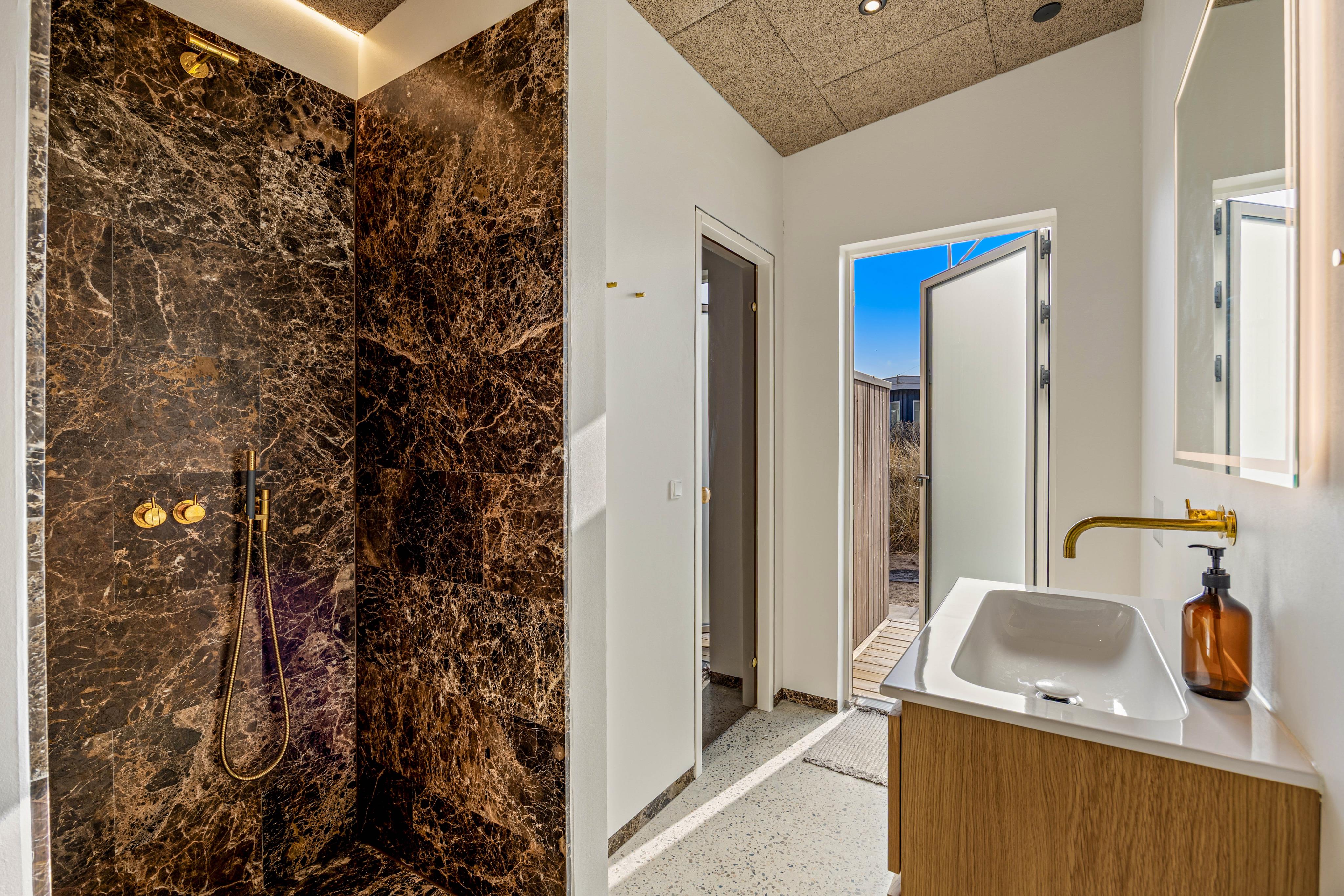 Im Außenbereich findet hier einen Außenwhirlpool, der euch unter dem Sternenhimmel Dänemarks ein besonderes Gefühl von Entspannung bietet. Die Außendusche ist eine Erfrischung für zwischendurch an warmen Sommertagen oder einfach um sich den Sand von den Füßen zu spülen. Die offene Terrasse ist abgeschirmt und zum Teil überdacht, sodass auch ein Wetterwechsel euer BBQ nicht stören kann. Auf den vorhandenen Gartenmöbeln könnt ihr euch zurücklehnen und eure zubereiteten Köstlichkeiten genießen, während das Rauschen der Nordsee die Hintergrundmusik liefert. Die praktischen Alltagshelfer wie eine zusätzliche Kühl- / Gefrierkombination und die Waschmaschine findet ihr im Schuppen.