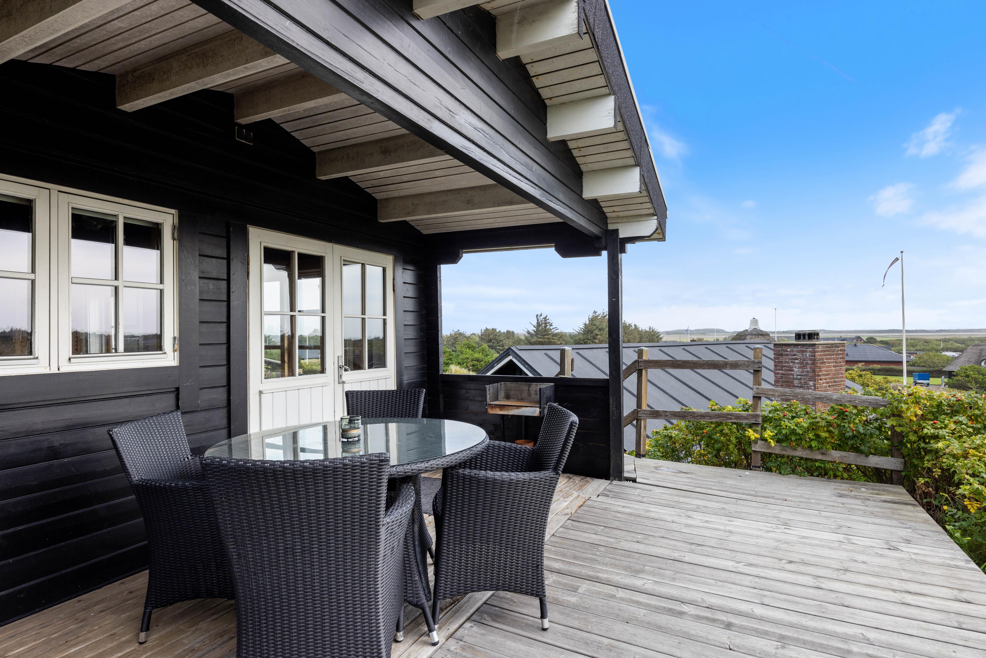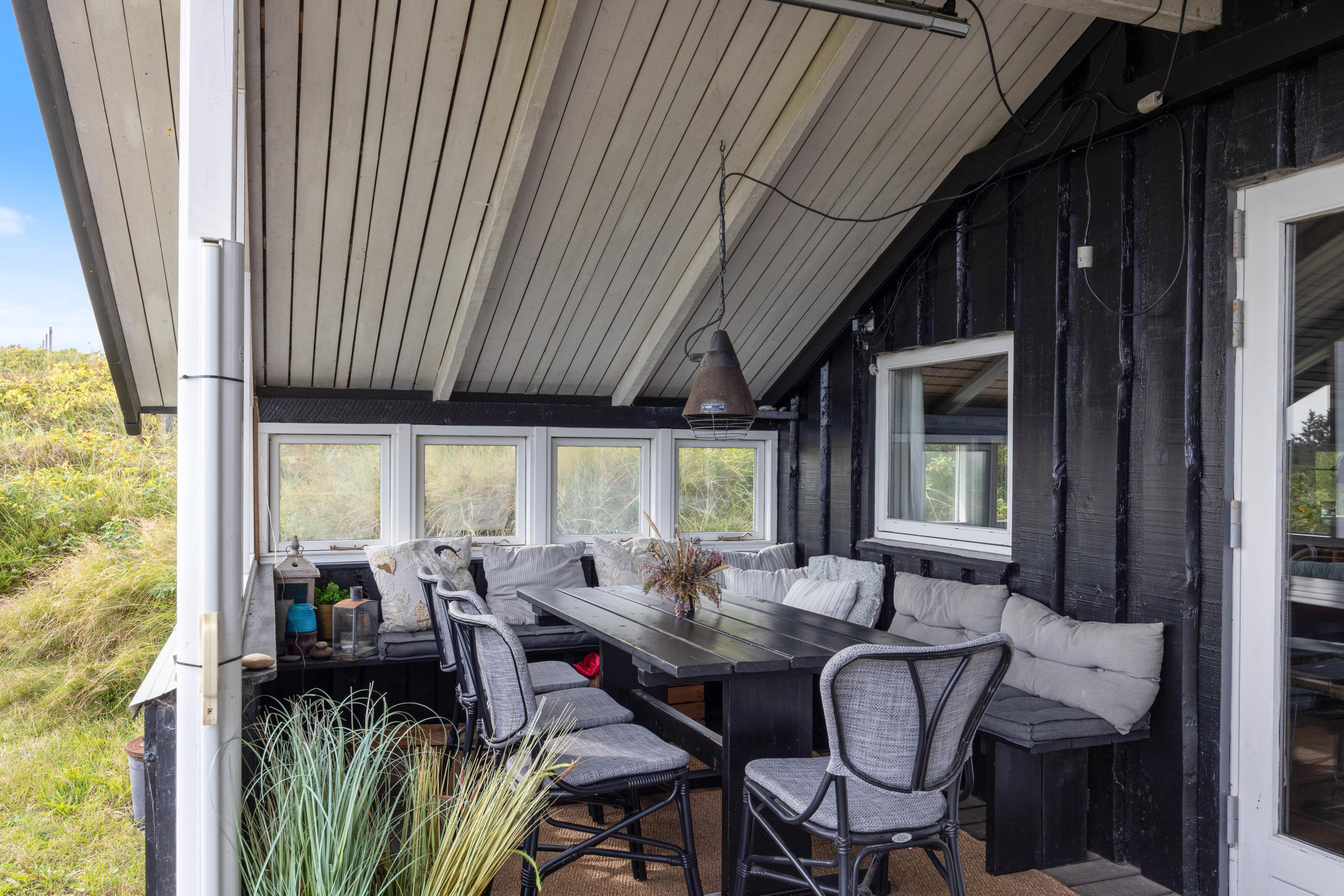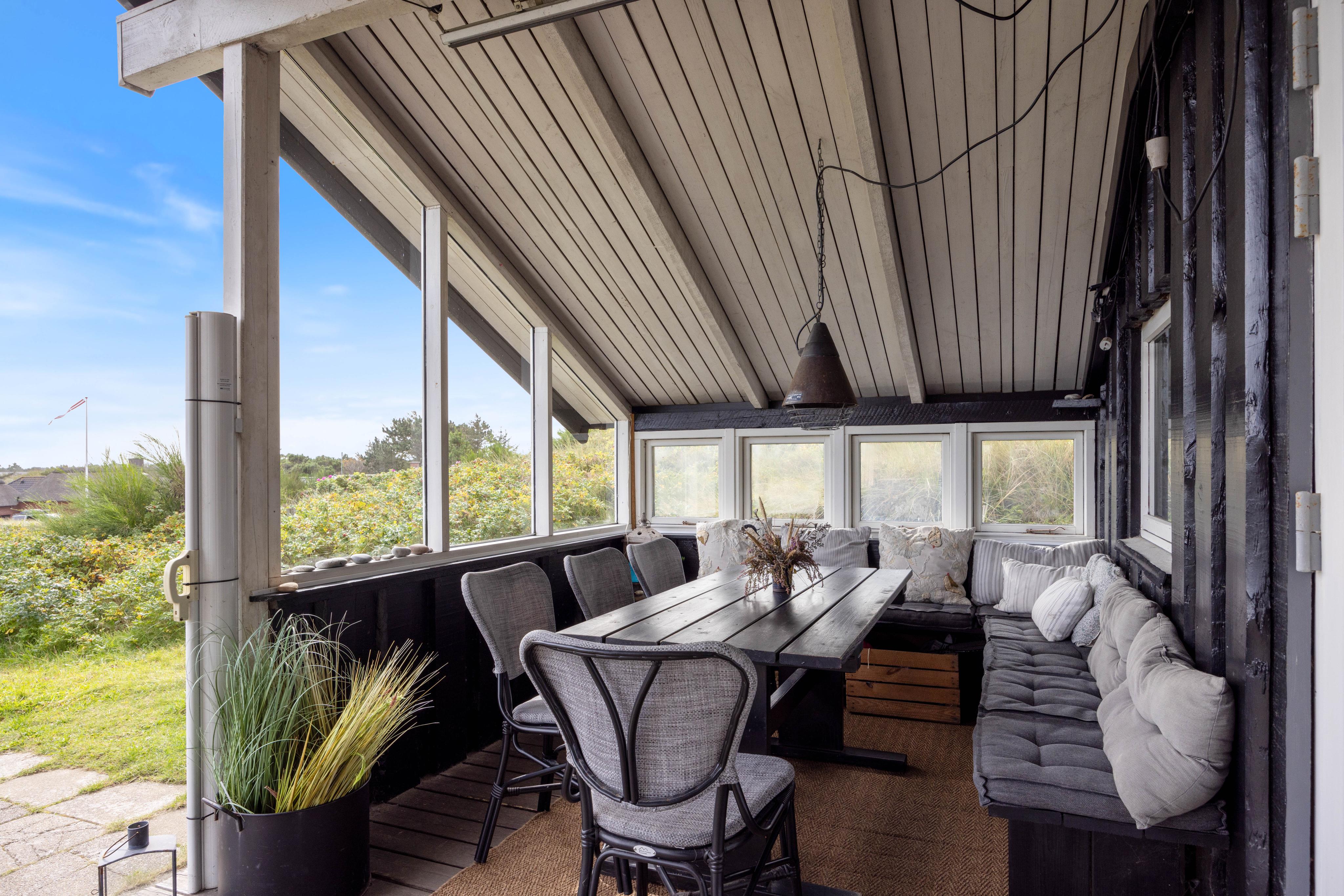 Zum Ferienhaus gehört ein Nebengebäude mit 2 Schlafzimmern und eigenem Bad. Das Nebengebäude verfügt auch über eigene Terrassen, von denen aus ihr den schönsten Blick über die Umgebung bis hin zum Ringkøbing-Fjord habt!