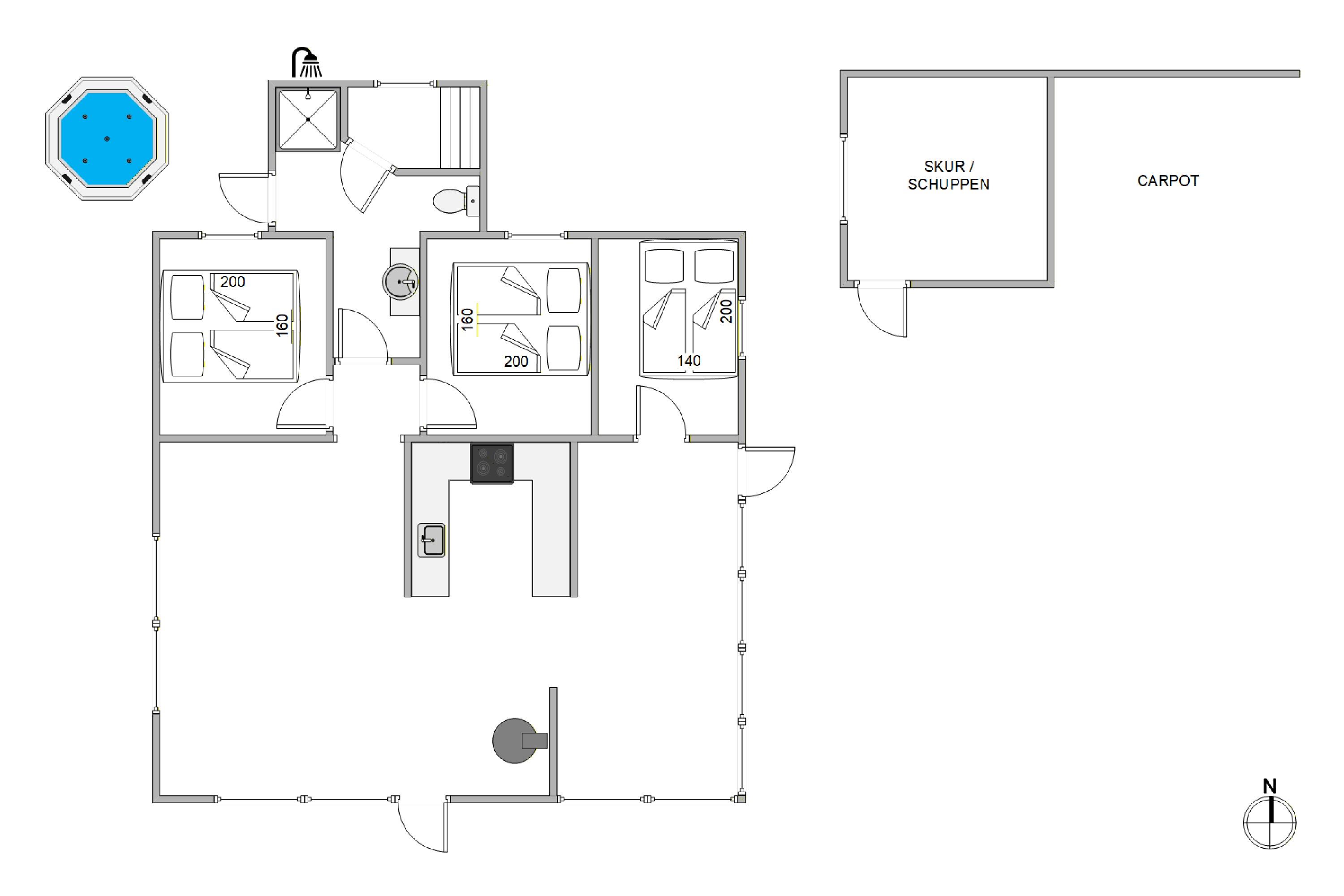 Draußen genießt ihr auf dem 1593 m2 großen Grundstück viel Platz zum Durchatmen. Auf der abgeschirmten und gleichzeitig geschlossenen Terrasse sitzt ihr geschützt, während ihr es euch mit Gartenmöbeln bequem macht, gemeinsam ein leckeres BBQ genießt und den Tag in Ruhe ausklingen lasst. Nach dem Strand ist die Außendusche, nutzbar von April – November, ein echtes Plus, um Sand und Salz schnell abzuspülen, bevor ihr in den Außenwhirlpool wechselt, um dort Wellness zu genießen, während die Nordsee die Hintergrundmusik liefert.