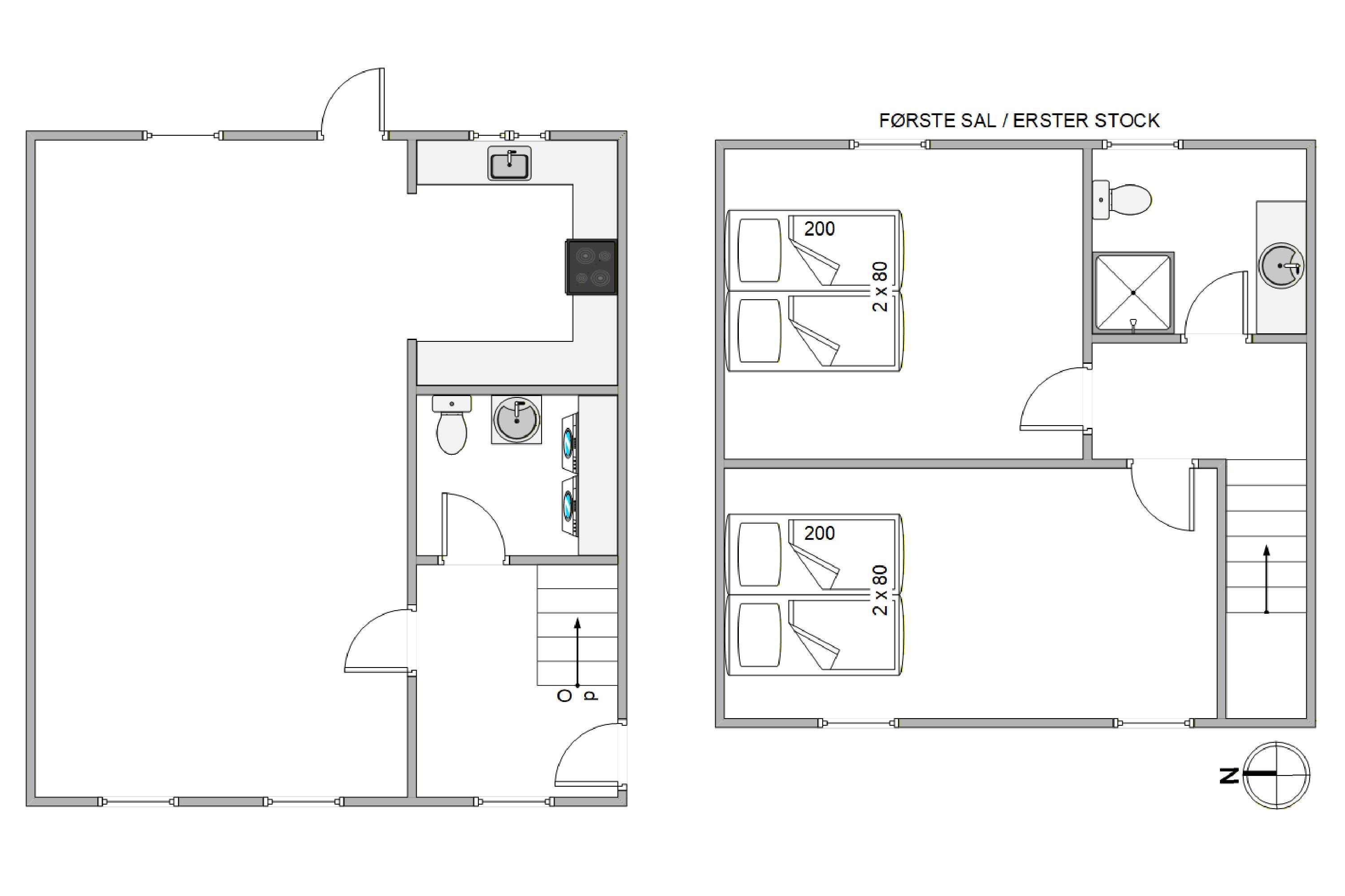 In der oberen Etage gibt es zwei Schlafzimmer, welche beide über bequeme Doppelbetten verfügen – perfekt, wenn ihr Privatsphäre schätzt oder nach einem aktiven Tag zur Ruhe kommen und gut schlafen möchtet. Hier oben befindet sich auch das Badezimmer, während sich in der unteren Etage die Gästetoilette befindet. Beides wird über eine Fußbodenheizung beheizt und sorgt für angenehm warme Füße. Zur weiteren Ausstattung gibt es eine Waschmaschine und einen Trockner, somit müsst ihr euch nicht allzu viele Gedanken ums Kofferpacken machen.