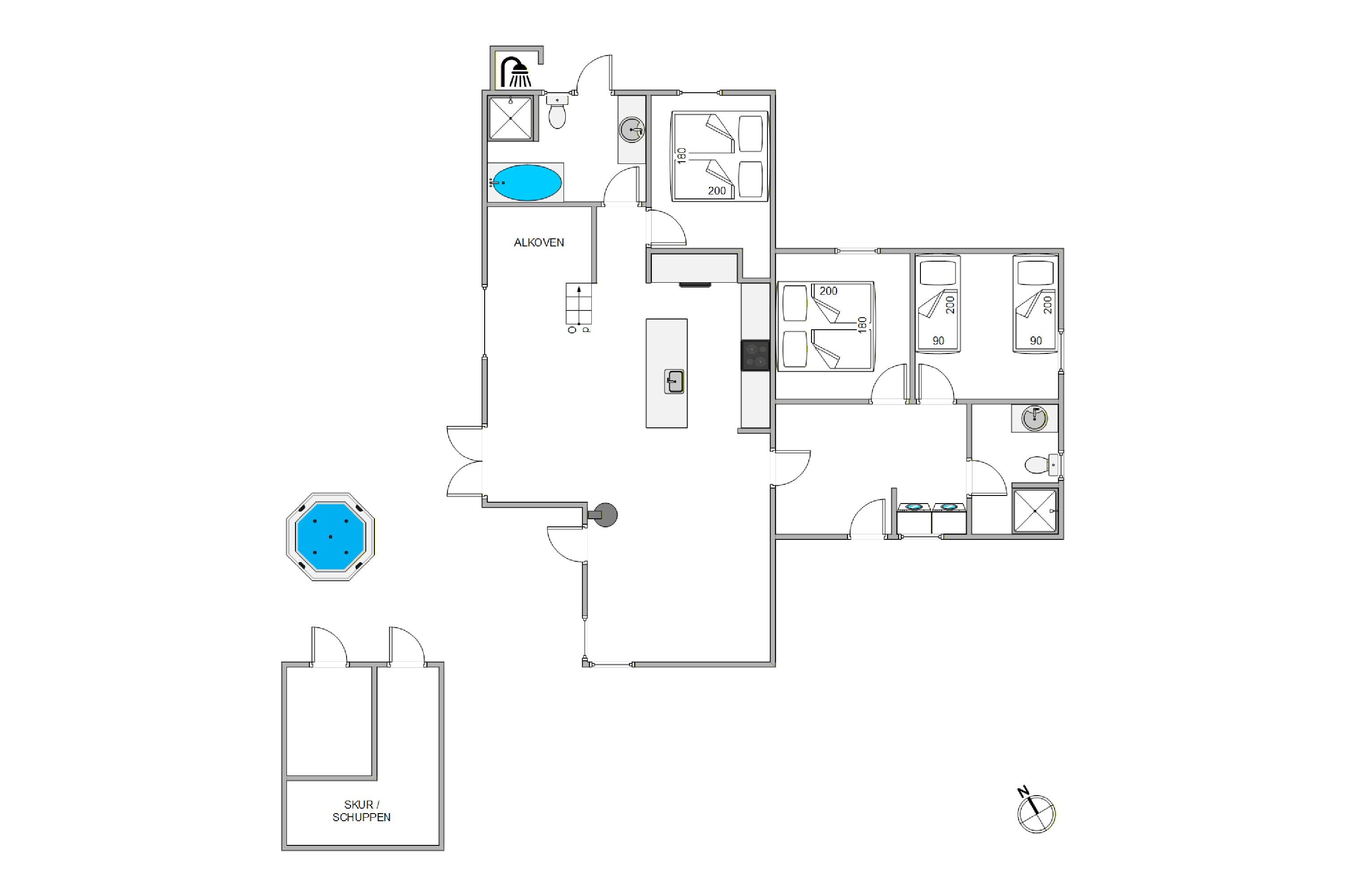 Das Ferienhaus im Nordsøvej 414 bildet den Rahmen für einen Urlaub an der Nordsee. Nicht zuletzt wegen des fantastischen Außenbereichs, der zum Ferienhaus gehört. Auf der großen, geschlossenen Terrasse gibt es eure ganz eigene Wellness-Oase mit einem Außenwhirlpool, in dem ihr euren Urlaub genießen könnt. Auch die Außendusche am Ferienhaus sollte nicht unerwähnt bleiben, nach einem langen Tag am Strand kann man sich hier von April bis einschließlich Oktober den Strandsand abspülen.