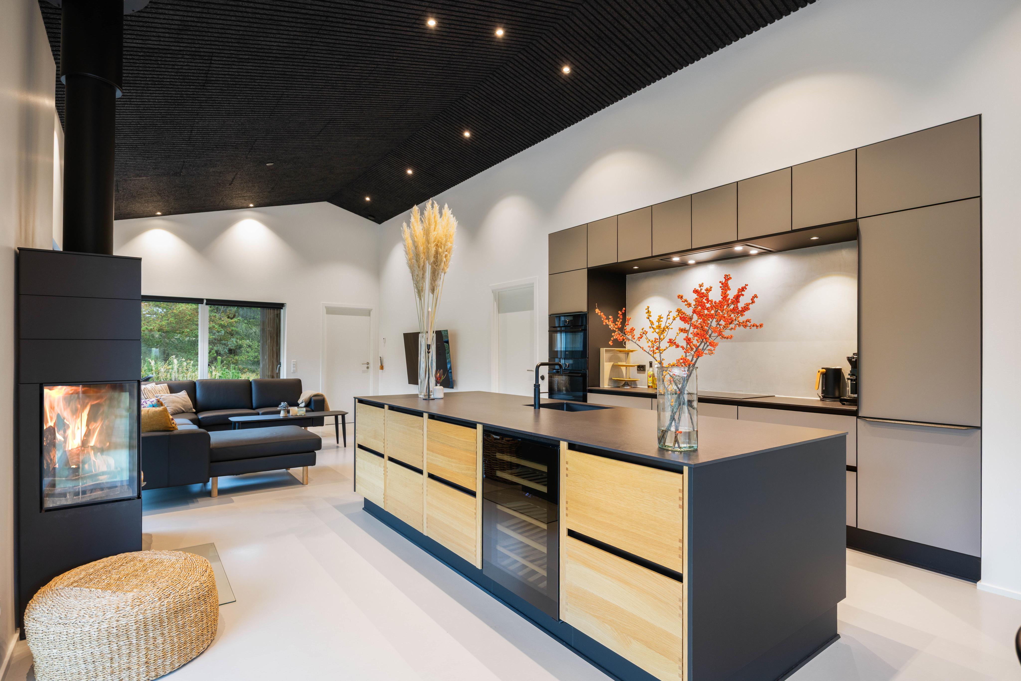 Der Wohnbereich ist offen zur gut ausgestatteten Küche gestaltet, die das Herzstück eurer kulinarischen Erlebnisse sein wird. Eine Spülmaschine erleichtert den Abwasch nach gemeinsamen Mahlzeiten. Damit der Wein die richtige Temperatur hat, wurde im Ferienhaus ein Weinkühlschrank installiert.Das Wohnzimmer bietet einen 65 Zoll Fernseher und wird für gemütliche Fernsehabende sorgen.
