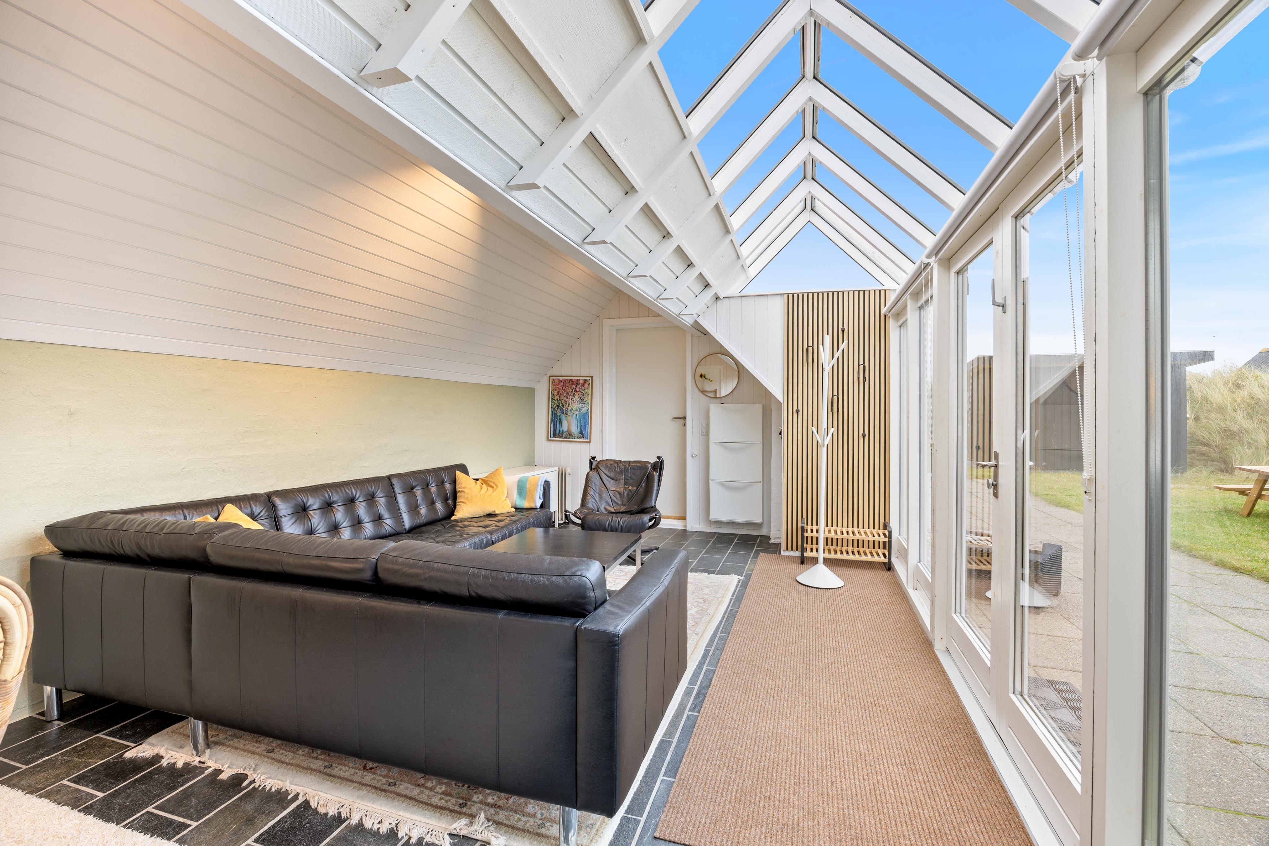 Vom Wohnzimmer aus gibt es einen direkten Zugang zur großen, geschlossenen Südterrasse. Hier könnt ihr euren Morgenkaffee genießen, und später am Tag könnt ihr auf der nach Westen ausgerichteten, geschlossenen Terrasse mit einem guten Buch im Schatten sitzen. Ansonsten könnt ihr den Grill anwerfen und die Nachmittags- oder Abendsonne genießen.