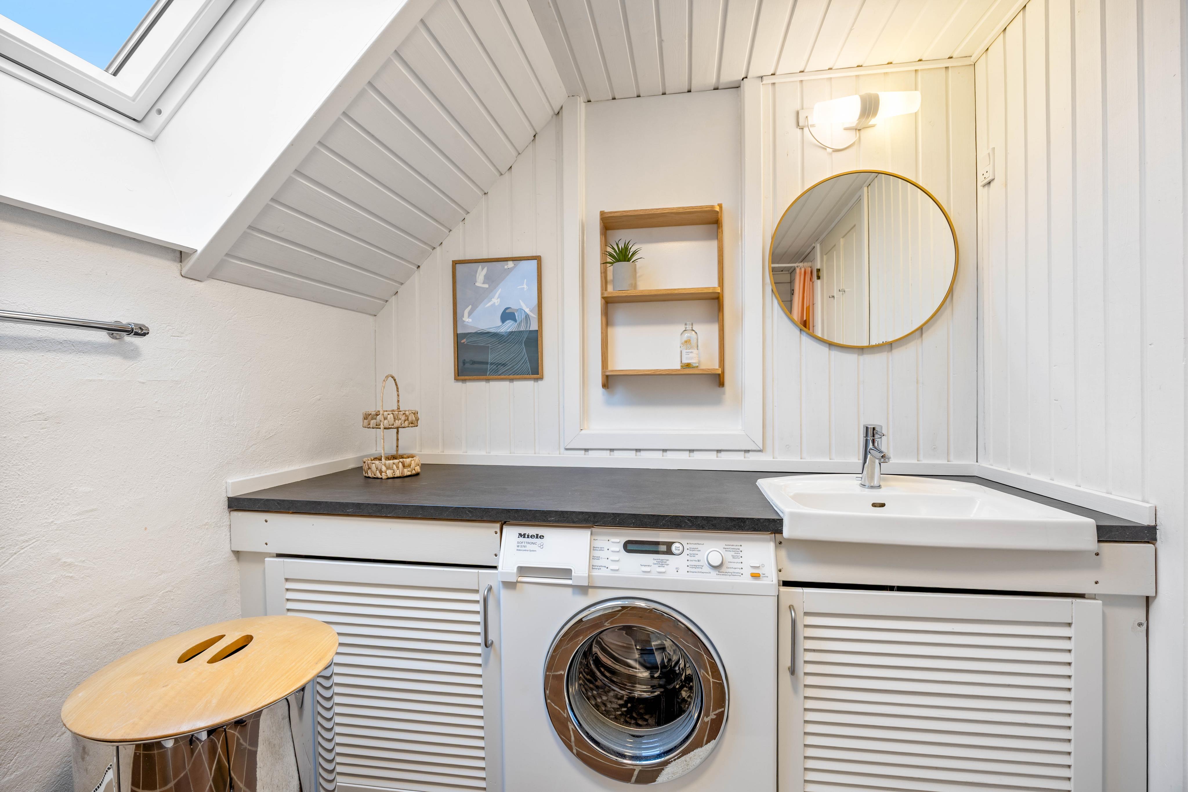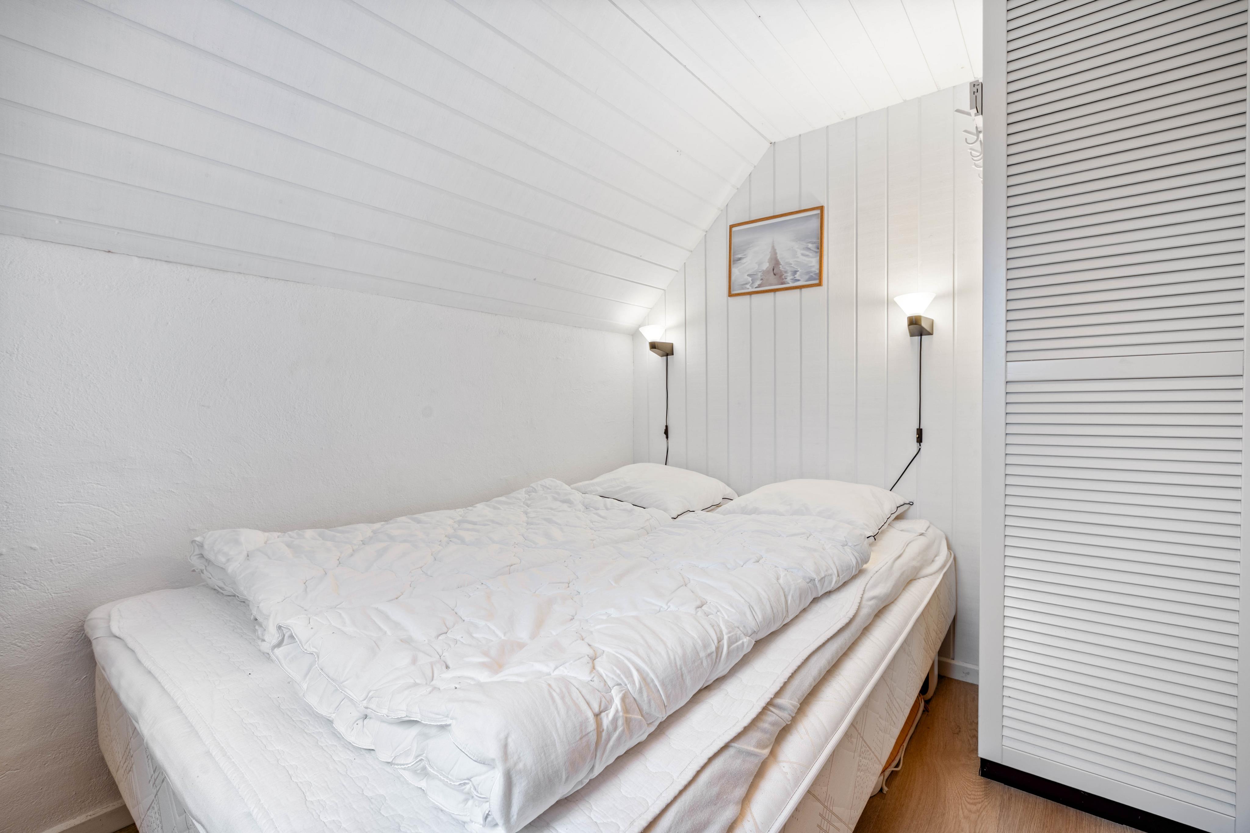 Das Ferienhaus ist mit zwei guten Schlafzimmern und einem Dachboden mit einem Doppelbett ausgestattet. In dem Ferienhaus findet ihr auch ein helles und schönes Badezimmer mit beheiztem Fliesenboden.