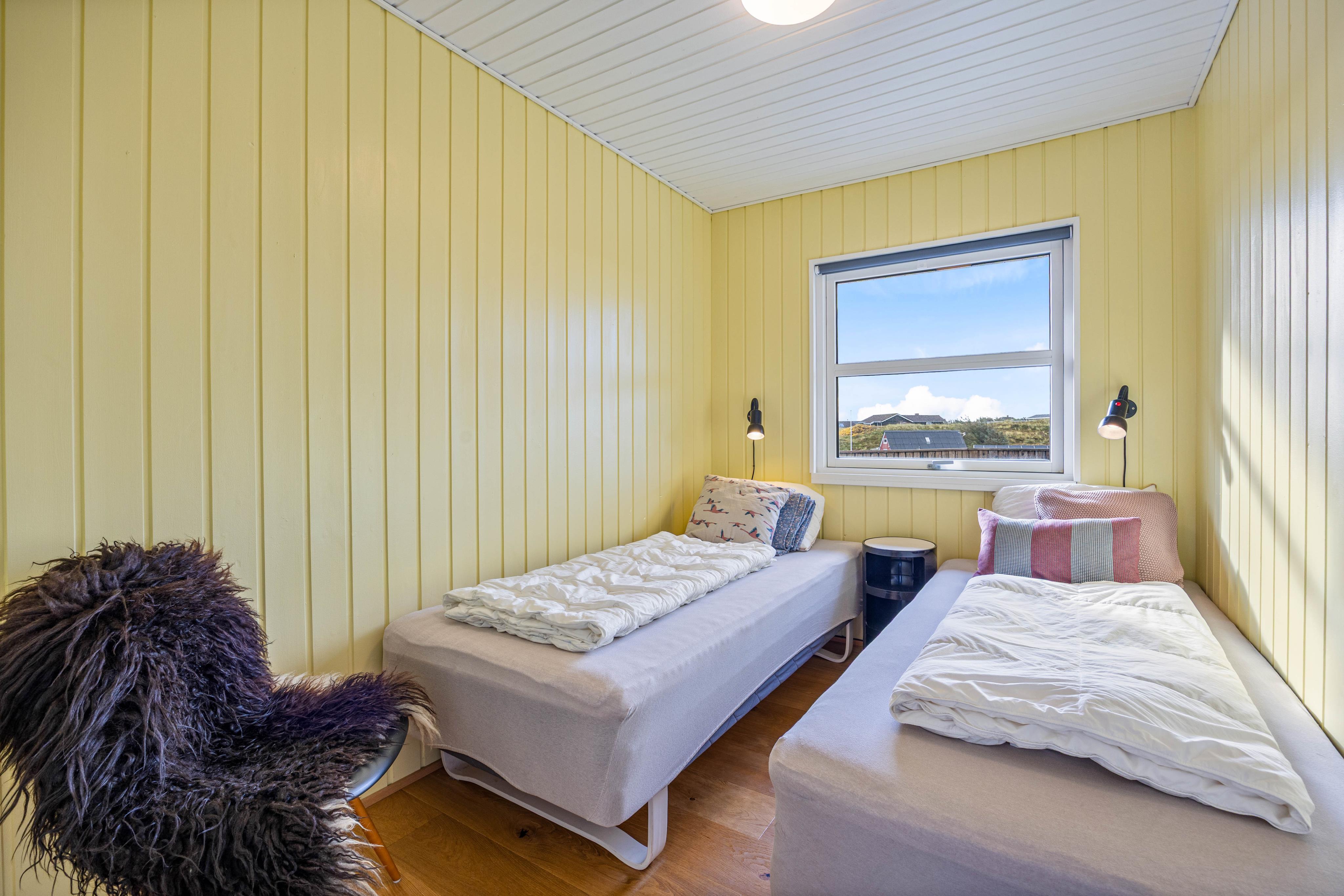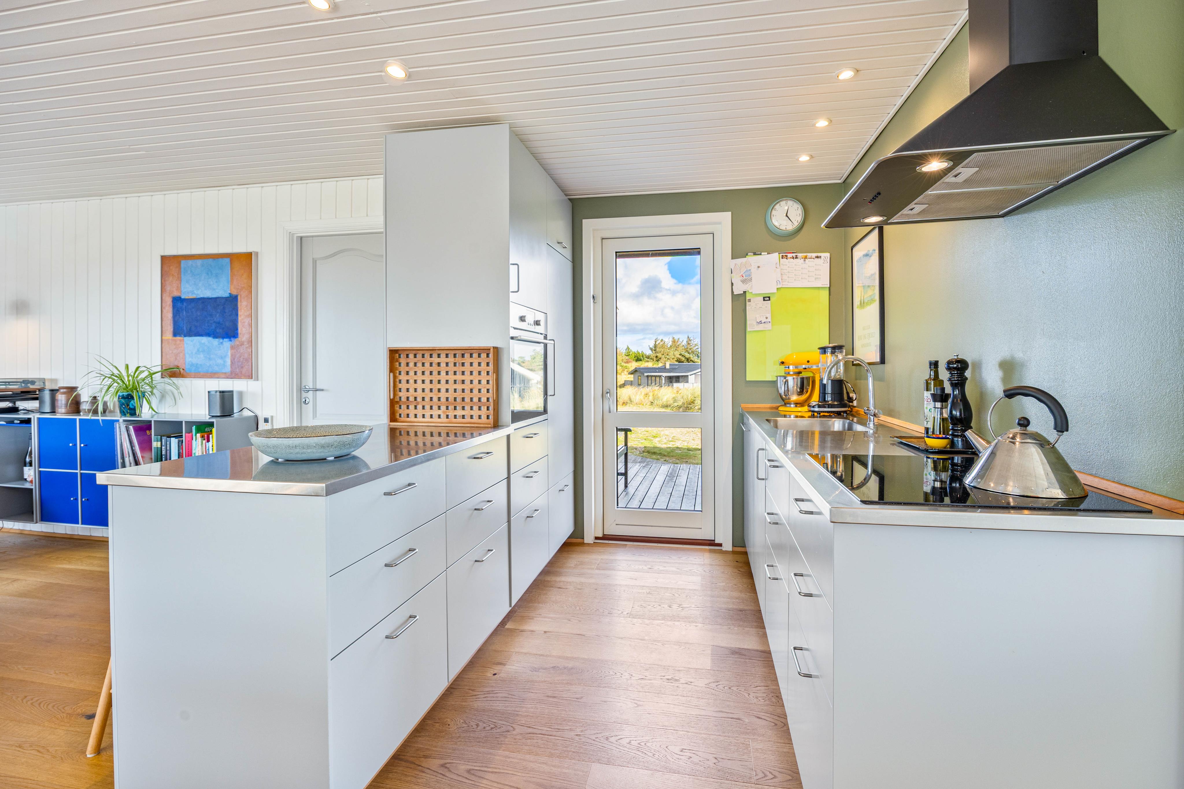 Der Ferienhaus ist schön auf einer Anhöhe gelegen. Es ist geräumig mit großzügigem Wohn- und Essbereich und offener Küche. Die Schlafzimmer sind wie meistens recht klein. Für die Kleidung steht in zwei Zimmern lediglich eine Kommode und ein Harken hinter der Tür zur Verfügung. In dem dritten Zimmer mit zwei Einzelbetten stand lediglich ein Nachttischen und ein Harken. Das Badezimmer ist geräumig mit einer begehbaren Dusche mit Glasabtrennung. Rund ums Haus sind verschiedene Sitzmöglichkeiten, so das man sich der Sonne und dem Wind anpassen kann. Die Aussicht vom Wohnraum auf die Dünen hat uns sehr gefallen. Der Strand ist über eine Düne fußläufig gut erreichbar.