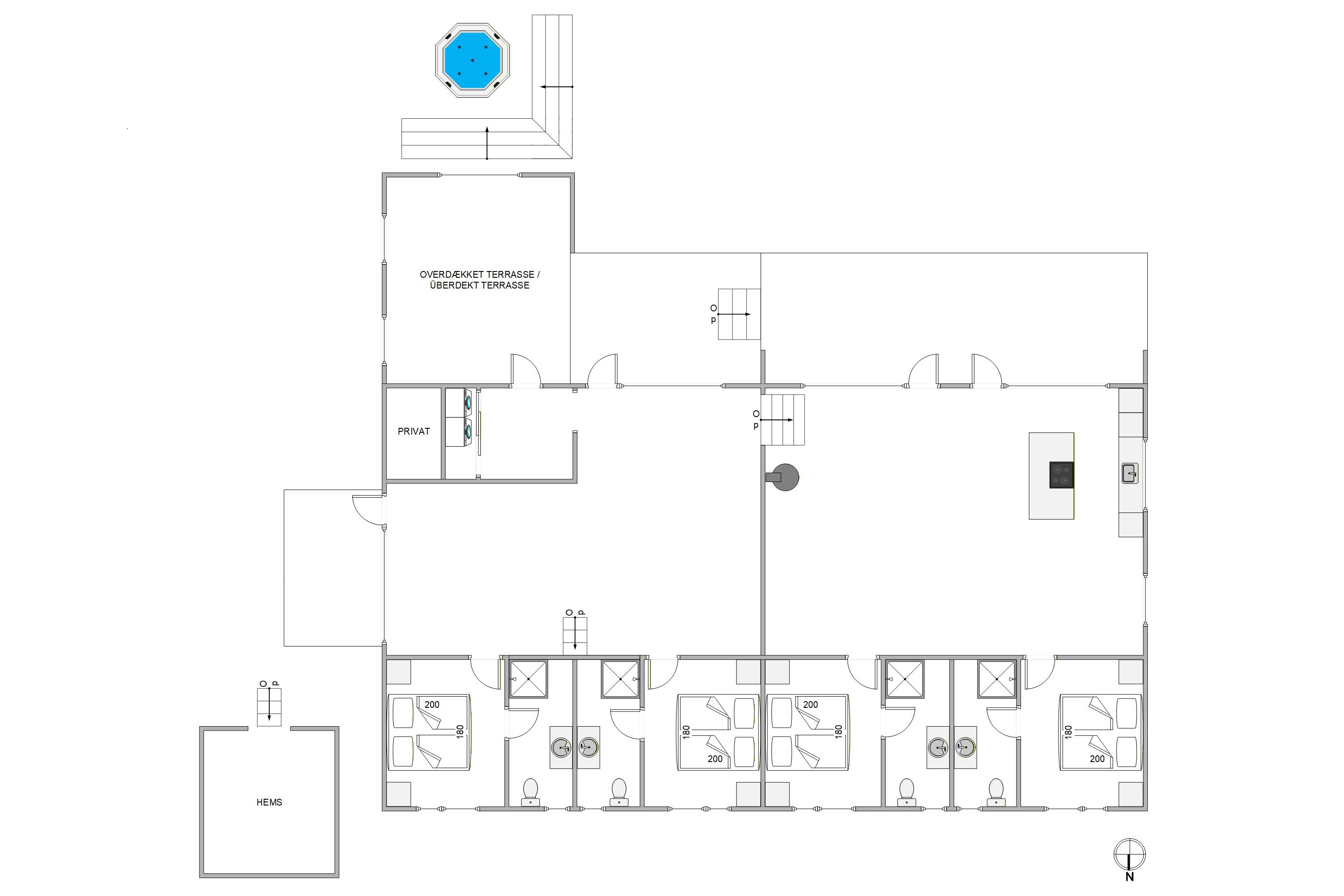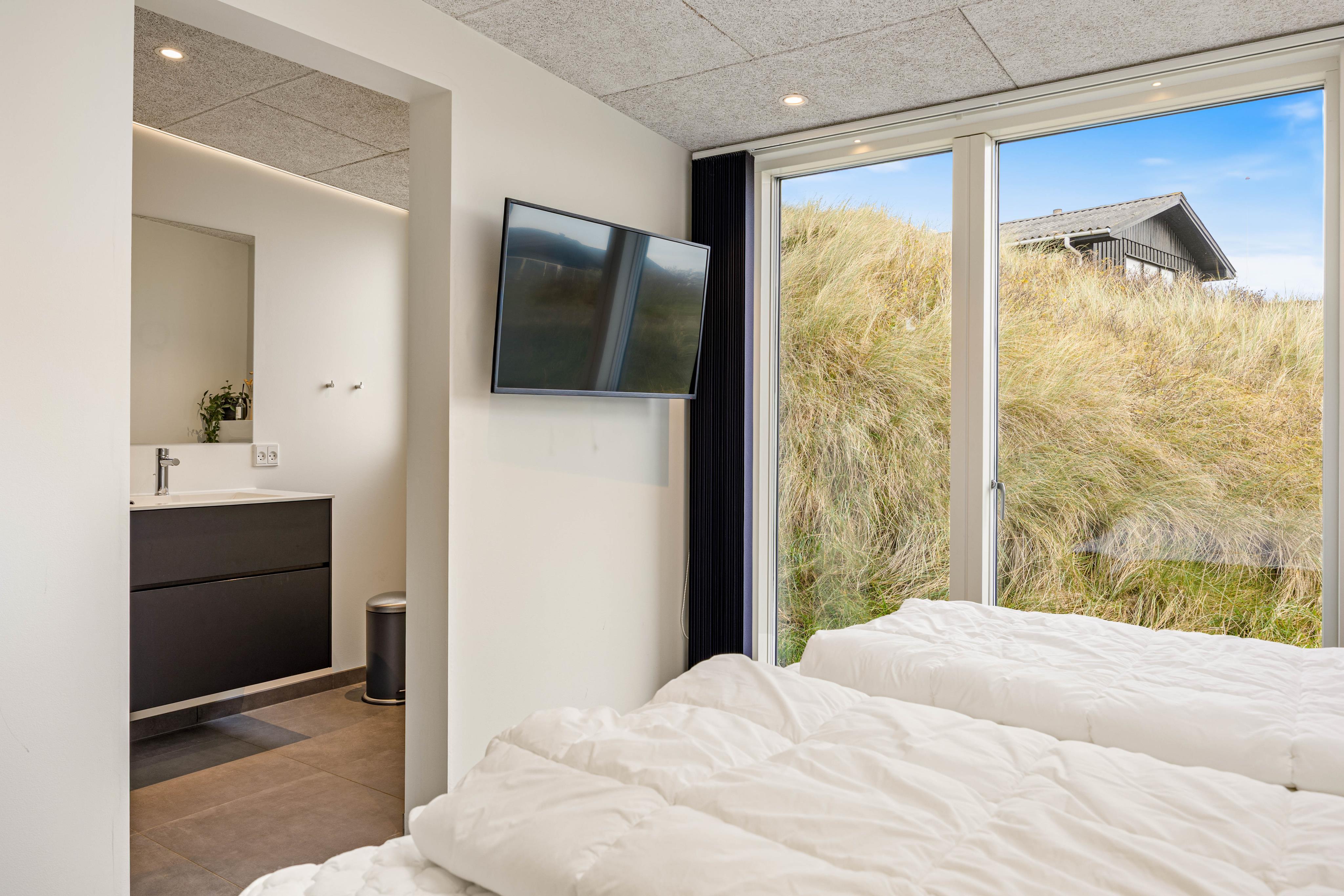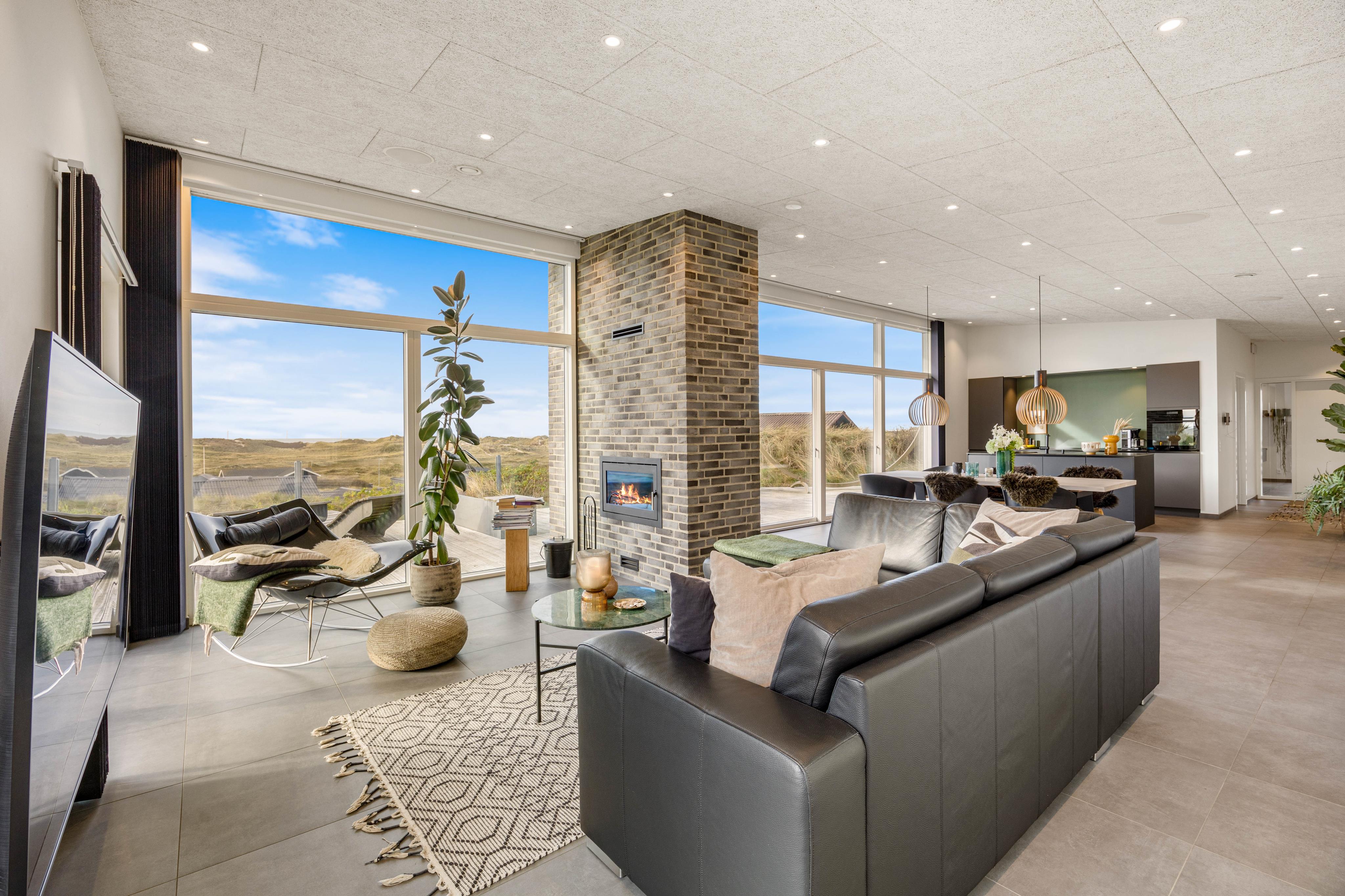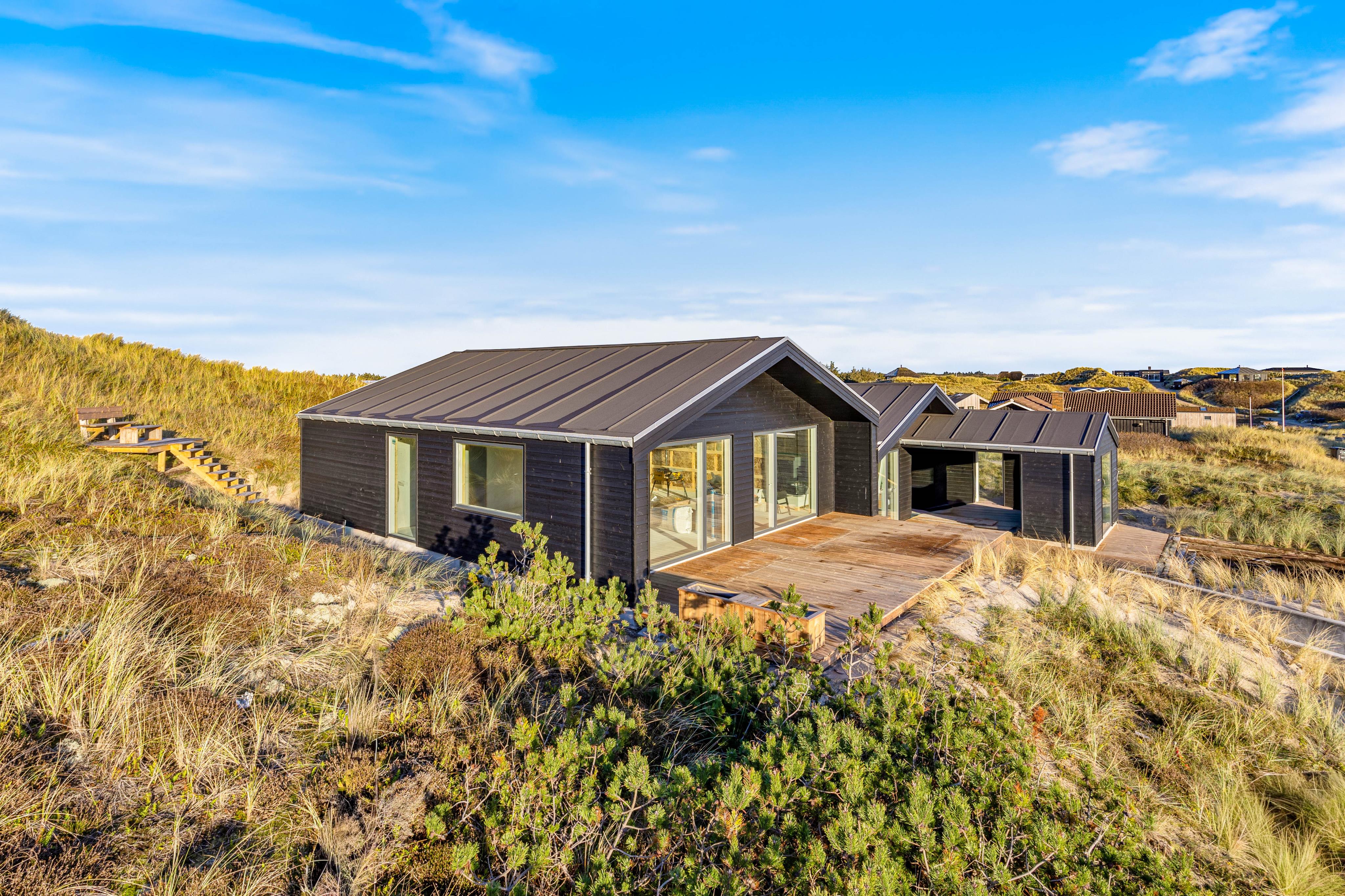 Euer Ferienhaus beeindruckt nicht nur im Innen-, sondern auch im Außenbereich. Verbringt entspannte Stunden auf der offenen, aber abgeschirmten Terrasse, von denen ihr die Schönheit des Natur- und Dünengrundstücks bewundern könnt. Gartenmöbel stehen euch zur Verfügung, um die Sonnenstunden in vollen Zügen zu genießen. Falls euch ein Regenschauer überrascht könnt ihr eure Möbel einfach unter den überdachten Teil der Terrasse stellen. Am Abend wird der Grill angemacht und ihr lehnt euch mit einem Kaltgetränk zurück und lasst den Tag in Ruhe Revue passieren. Der Außenwhirlpool lädt dazu ein, den Tag in wohltuender Entspannung ausklingen zu lassen und unter dem Sternenhimmel Dänemarks zu relaxen.