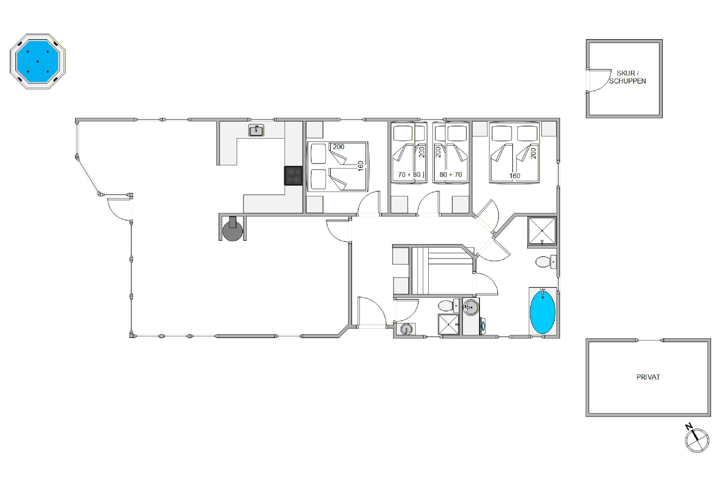Der Aussenwhirlpool ist natürlich ein Highlight, am sonsten ganz normales Ferienhaus. Sauna gut. Etwas überteuert zu Ferienzeit.