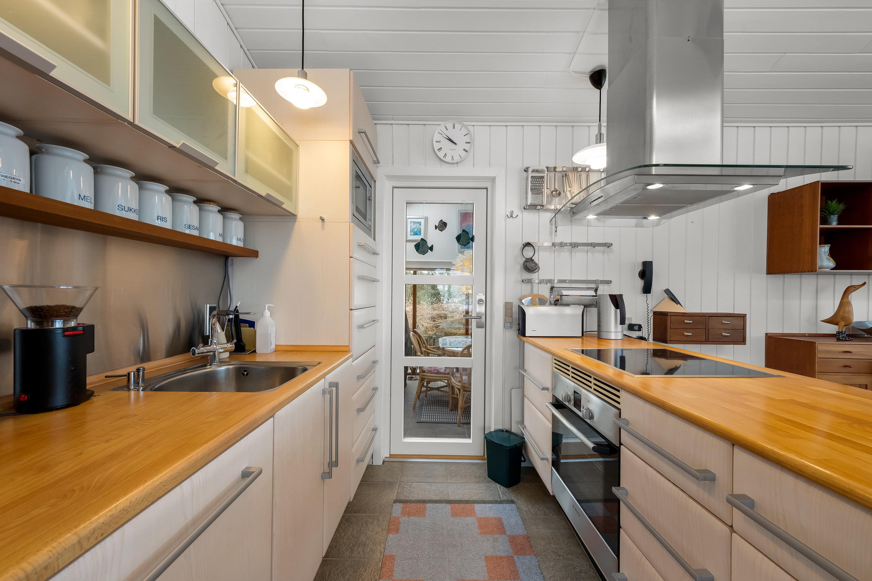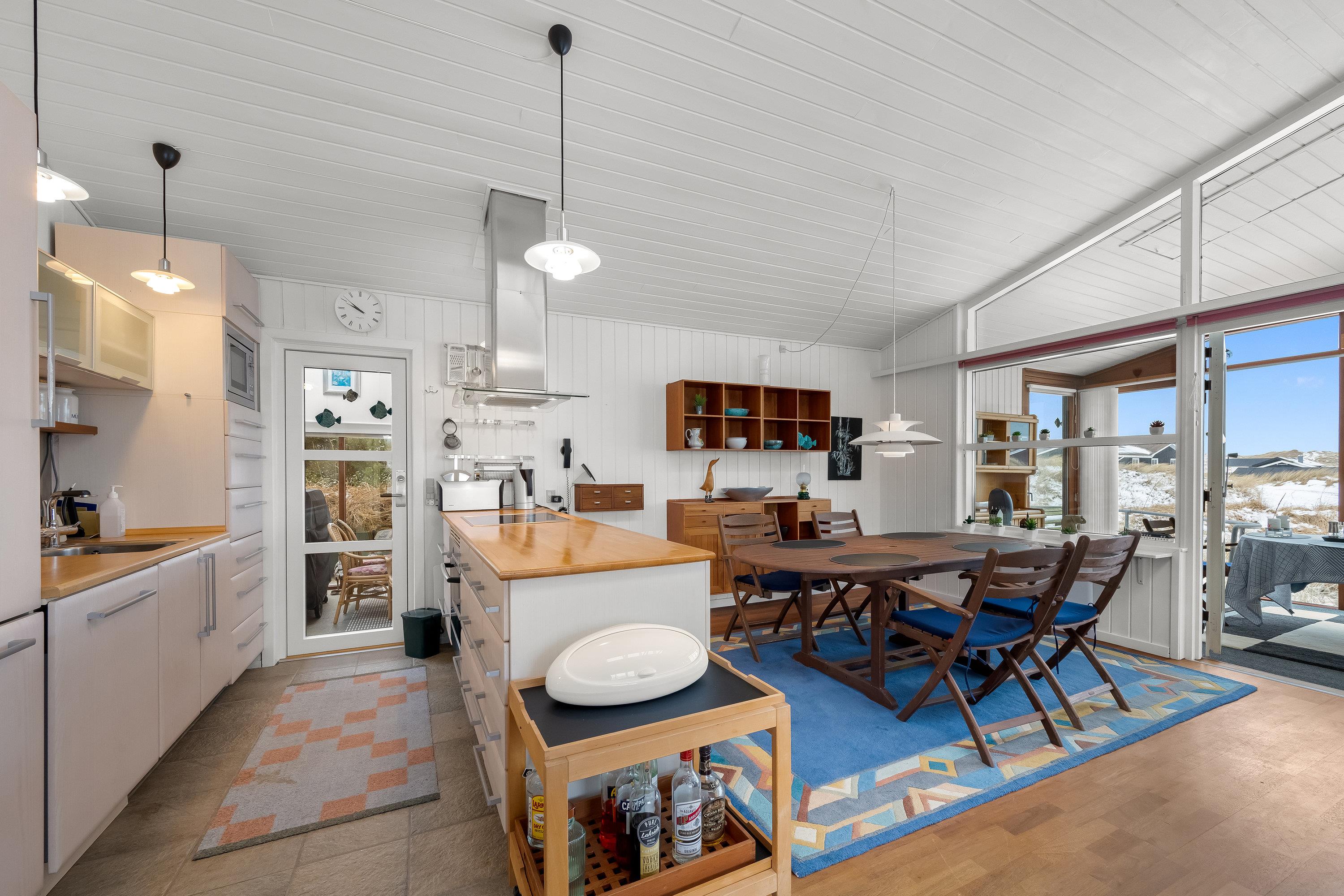 Das Ferienhaus empfängt euch mit typisch dänischer Gemütlichkeit. Der offene Wohn und Essbereich wirkt durch die Oberlichter sehr hell. Wenn ihr nach einem Tag an der frischen Luft zurückkommt, sorgt der Holzofen für eine behagliche Atmosphäre, die euren Abend sofort besonders macht. Ergänzt wird das Wohngefühl durch eine moderne Wärmepumpe, die euch zu jeder Jahreszeit im Wohnbereich angenehme Temperaturen schafft. Praktische Extras wie Spülmaschine und Waschmaschine machen euren Aufenthalt noch leichter, weil ihr weniger organisieren müsst und mehr Zeit für das habt, was wirklich zählt.
