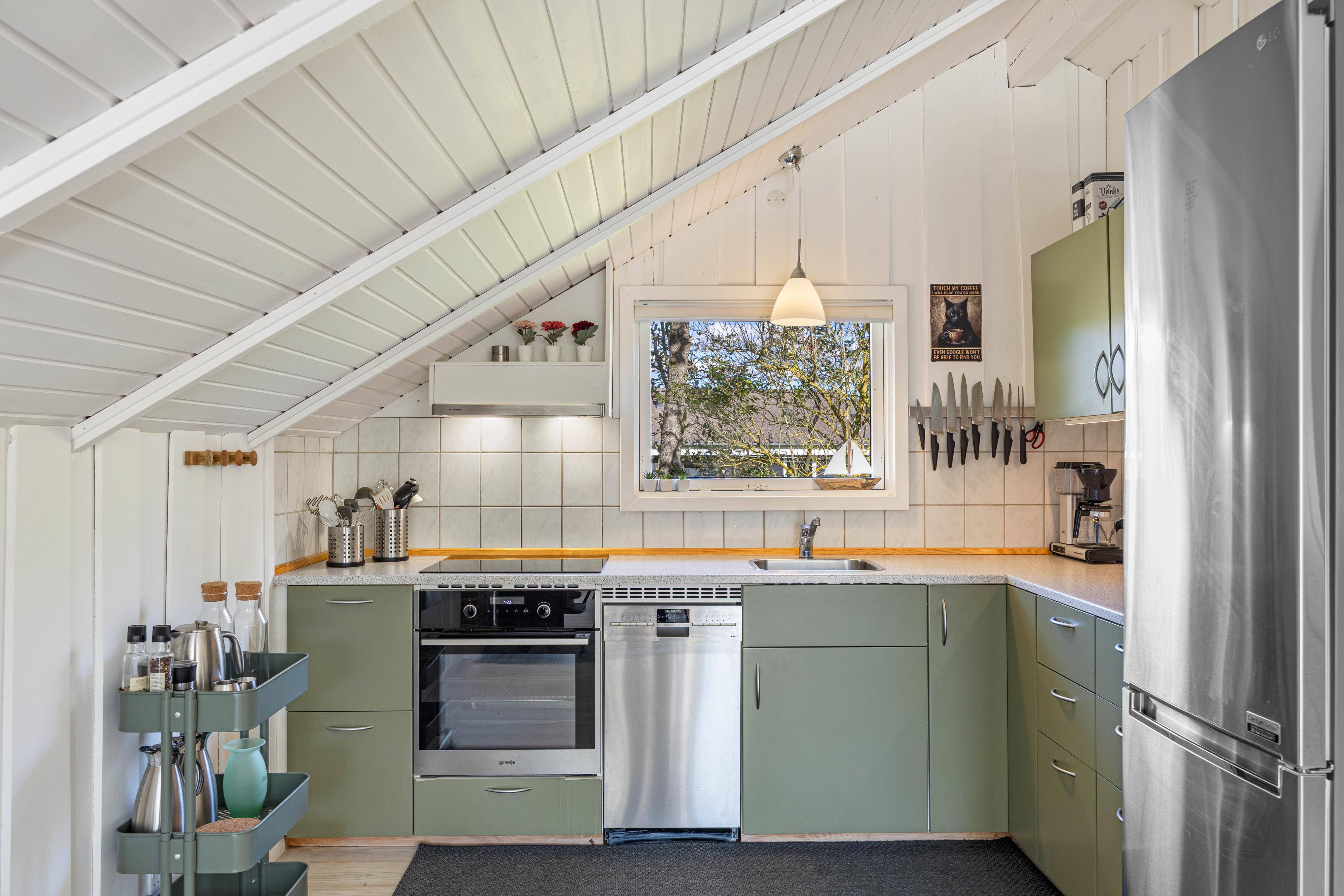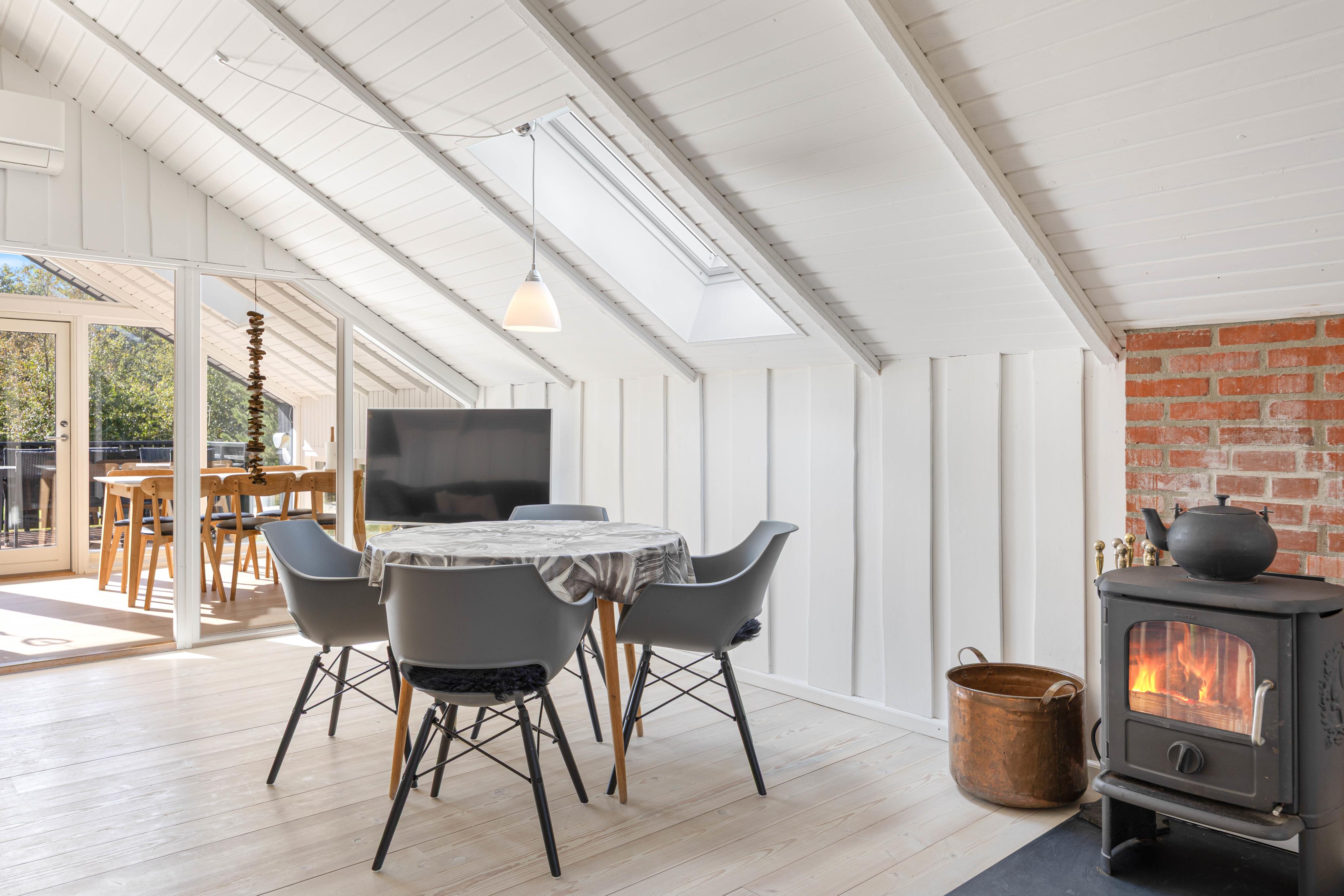 Die Einrichtung des Ferienhauses ist auf das ideale Urlaubserlebnis zugeschnitten und verbindet modernes Design mit Gemütlichkeit. Der gesamte Wohnbereich ist offen gestaltet, sodass ihr hier viel Zeit miteinander verbringen könnt, egal ob ihr neue Rezepte ausprobiert, um dann der Spülmaschine den Abwasch zu überlassen, oder einen lustigen Spieleabend veranstaltet. Das geräumige Ferienhaus mit einer Fläche von 108 m² verfügt über einen schönen Holzofen, der an kühleren Abenden für eine warme Atmosphäre sorgt. Der Wintergarten sorgt im Herbst und Winter für ein „Draußen Gefühl“, wenn das Wetter mal nicht mitspielen möchte. Eine energiesparende Wärmepumpe schont euren Geldbeutel und sorgt für eine konstante Raumtemperatur im Wohnbereich.