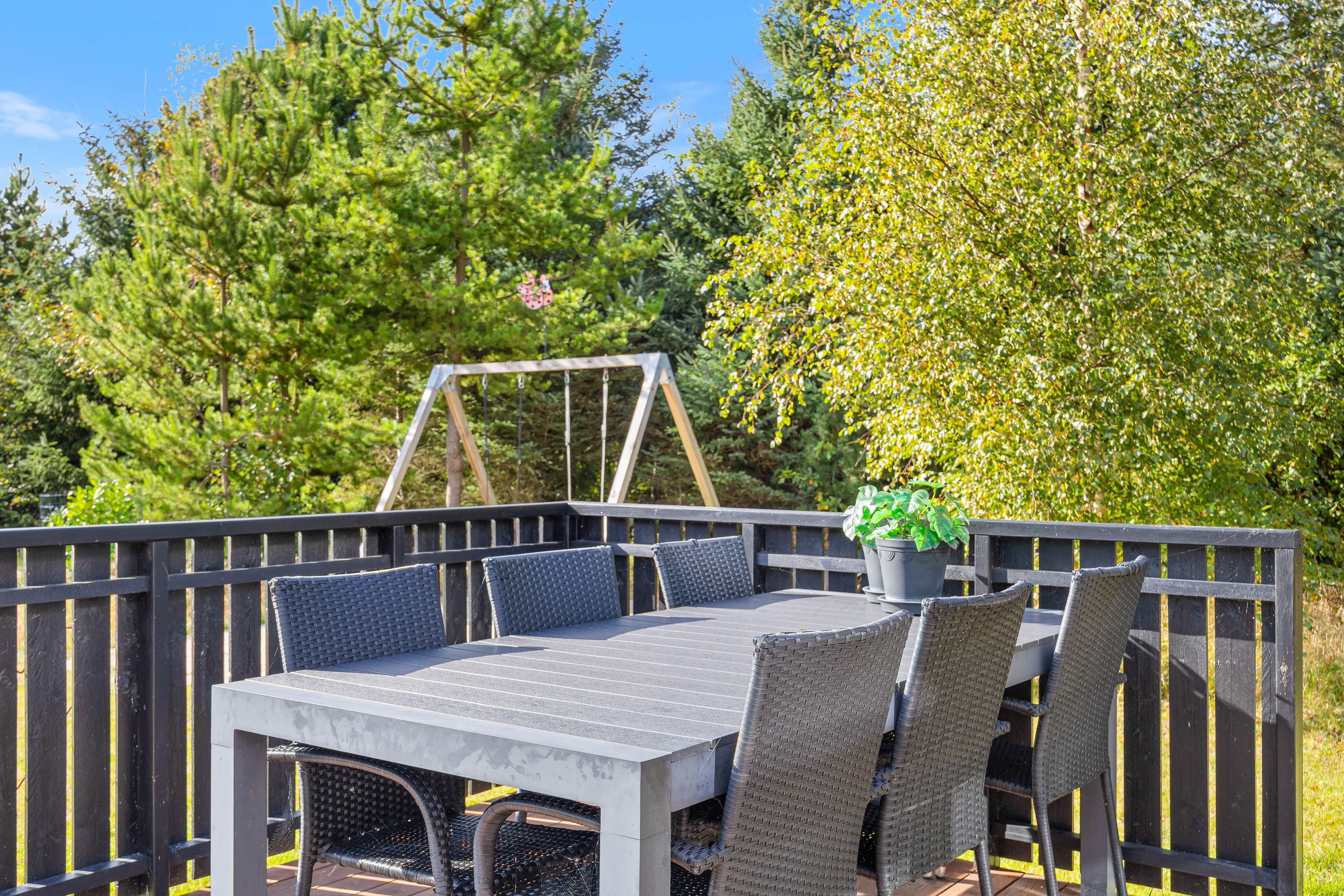 Im Freien könnt ihr die schönen Terrassen genießen, und der Sonne folgen. Es wird sich für jeden sein Lieblingsplatz finden lassen und sollte das Wetter umschlagen, könnt ihr unter dem überdachten Teil sitzen. Auf den Gartenmöbeln könnt ihr es euch bequem machen und die Seele baumeln lassen. Die Kinder werden es lieben, im Garten zu Schaukeln und im Sandkasten zu spielen, während ihr mit dem Hund spielt. Hier könnt ihr am Abend leckeres BBQ veranstalten und in Ruhe den Tag Revue passieren lassen.