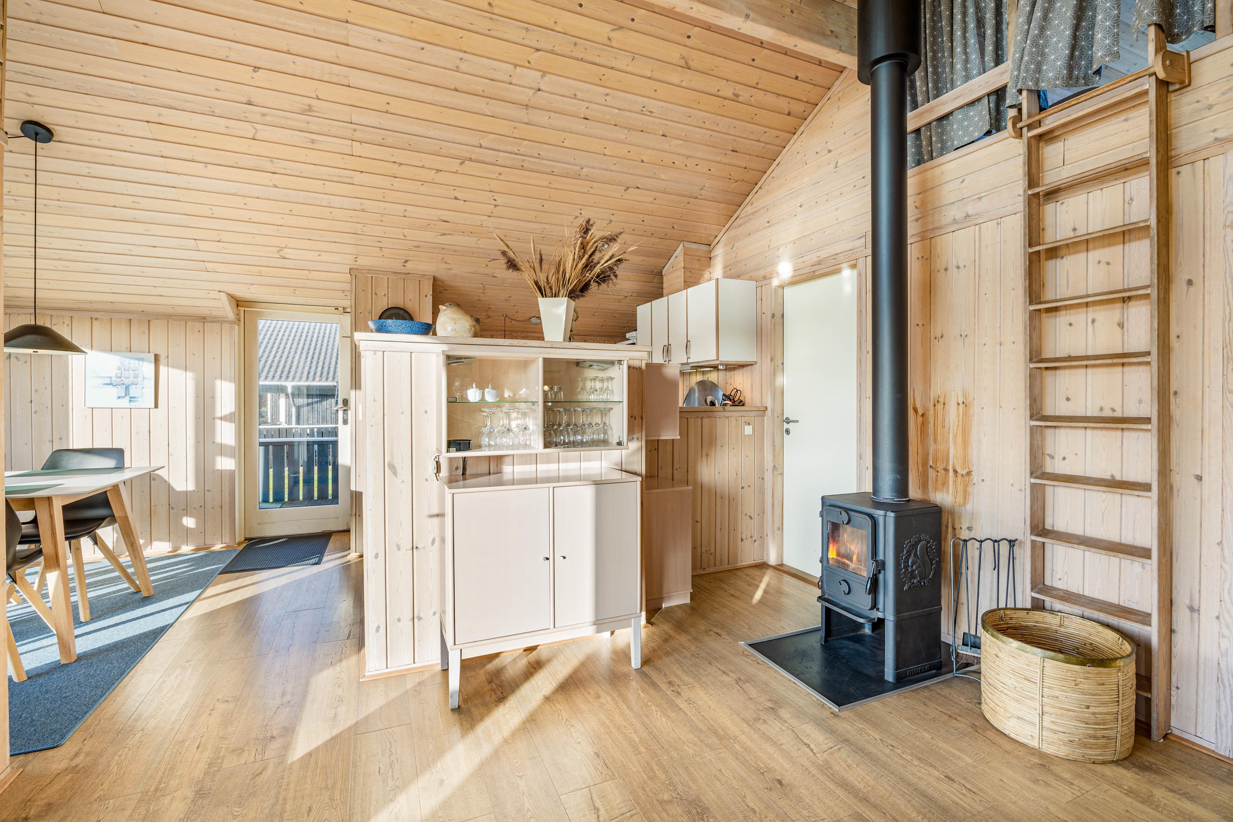 Genießt den großzügigen Wohnbereich, der mit einem einladenden Holzofen ausgestattet ist. Hier könnt ihr es euch an kühleren Abenden so richtig gemütlich machen. Das Ferienhaus bietet Platz für bis zu sechs Personen, ideal für Familien oder Freunde, die gemeinsam unvergessliche Erinnerungen sammeln möchten. Nutzt die voll ausgestattete Küche mit Geschirrspüler, um eure Lieblingsgerichte ohne großen Aufwand zuzubereiten. Die energiesparende Wärmepumpe sorgt im Wohnbereich für ein konstantes und angenehmes Raumklima.