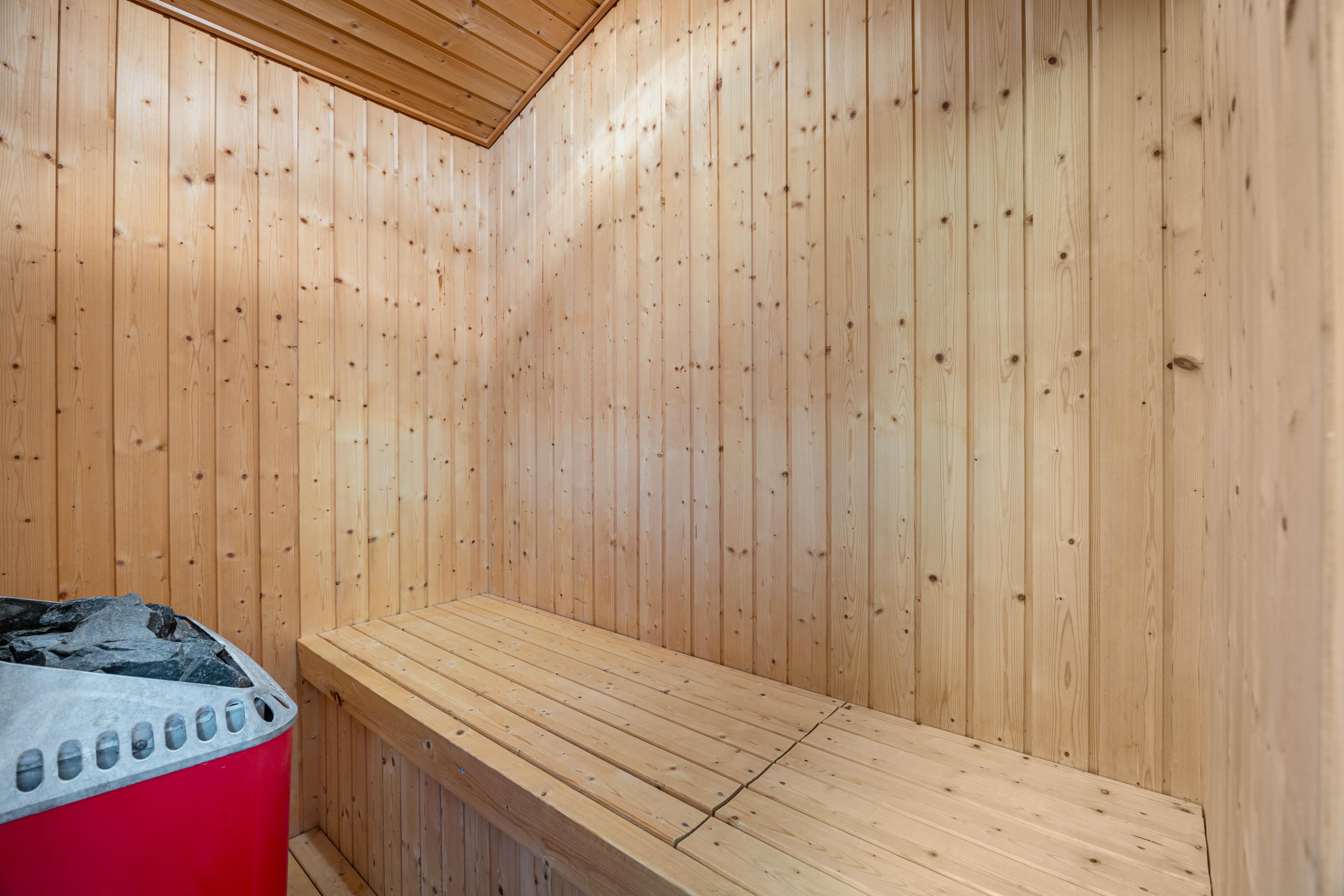 Das Hauptbadezimmer beherbergt ein klein wenig Wellnessmöglichkeiten - die Sauna und der Whirlpool wird besonders diejenigen unter euch erfreuen, die sich auf Entspannung und wohlige Wärme für die Muskulatur freuen.