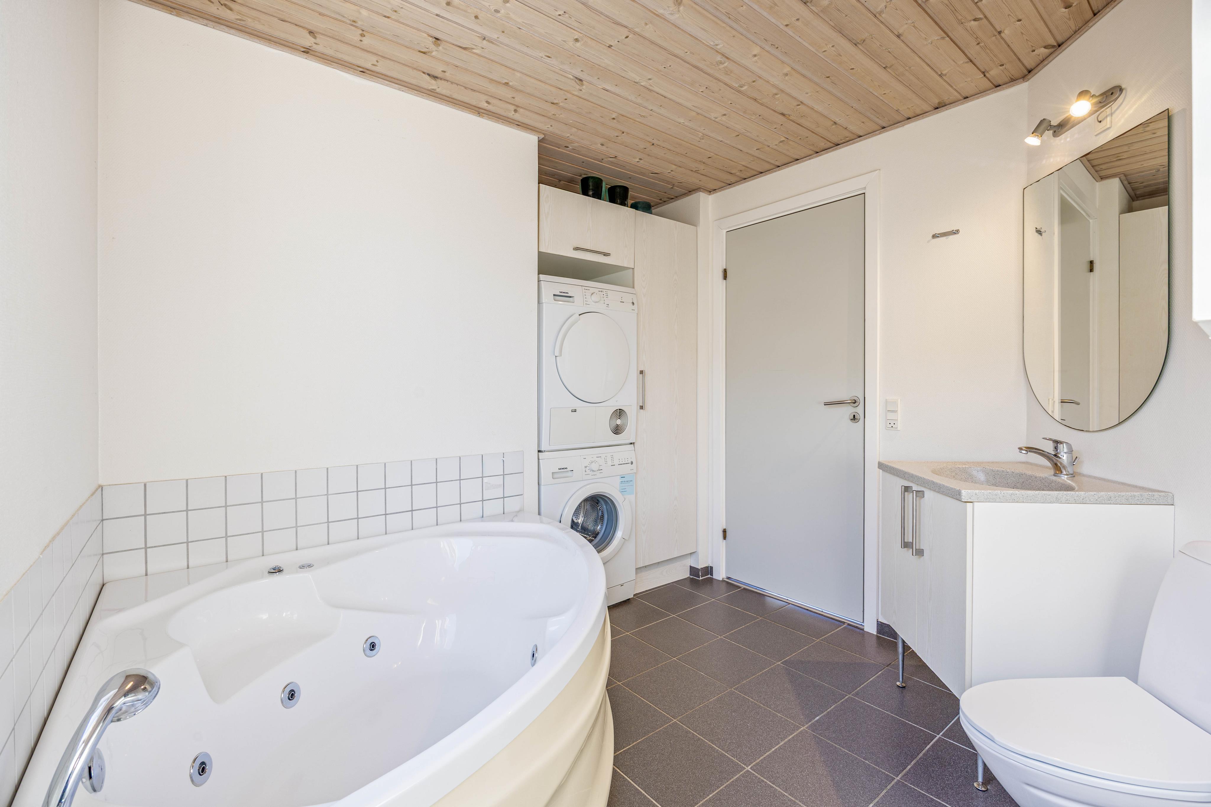 Insgesamt stehen euch 3 Schlafzimmer zur Verfügung, sodass ihr eure Nächte flexibel planen könnt. Es gibt 2 Doppelbetten und 2 Einzelbetten, ideal für Familien oder Freunde, die gerne ihre eigene Schlafaufteilung haben. Zusätzlich findet ihr 2 weitere Schlafplätze im Dachgeschoss – praktisch, wenn du mit Kindern reist oder ihr den Raum spontan anders nutzen möchtet. Das Badezimmer ist mit einer Fußbodenheizung und einem Whirlpool ausgestattet, was besonders am Morgen und nach dem Wellnessprogramm spürbar angenehm ist. Damit ihr auch bei längeren Aufenthalten entspannt bleibt, sind zudem Waschmaschine und Trockner vorhanden.