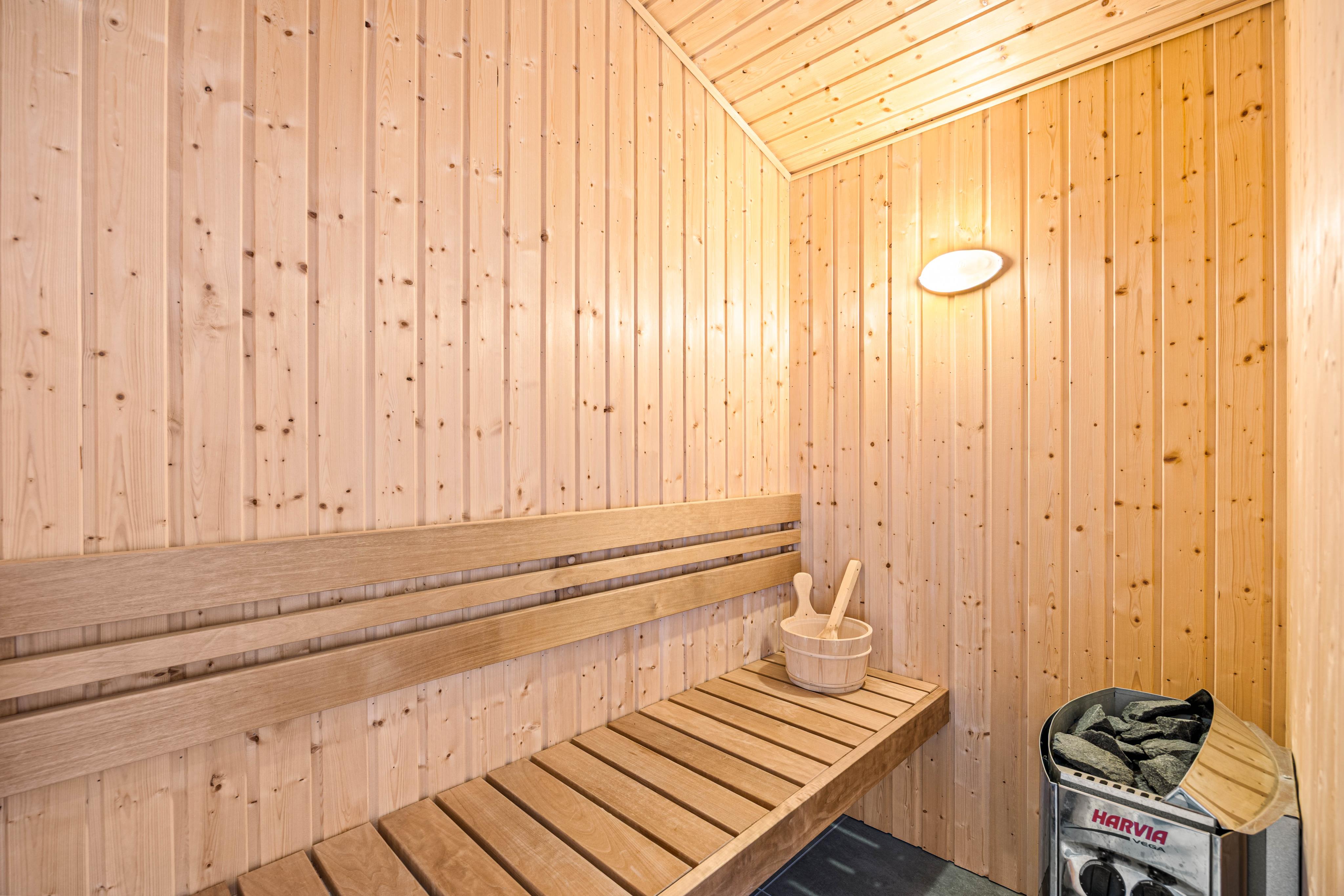 Es gibt zwei Badezimmer mit Fußbodenheizung, wobei eines der beiden Badezimmer einen Wellnessbereich beinhält. Hier findest du einen Whirlpool für 2 Personen und eine kleine Sauna, wo du dich nach einem spannenden Urlaubstag wieder aufwärmen kannst.