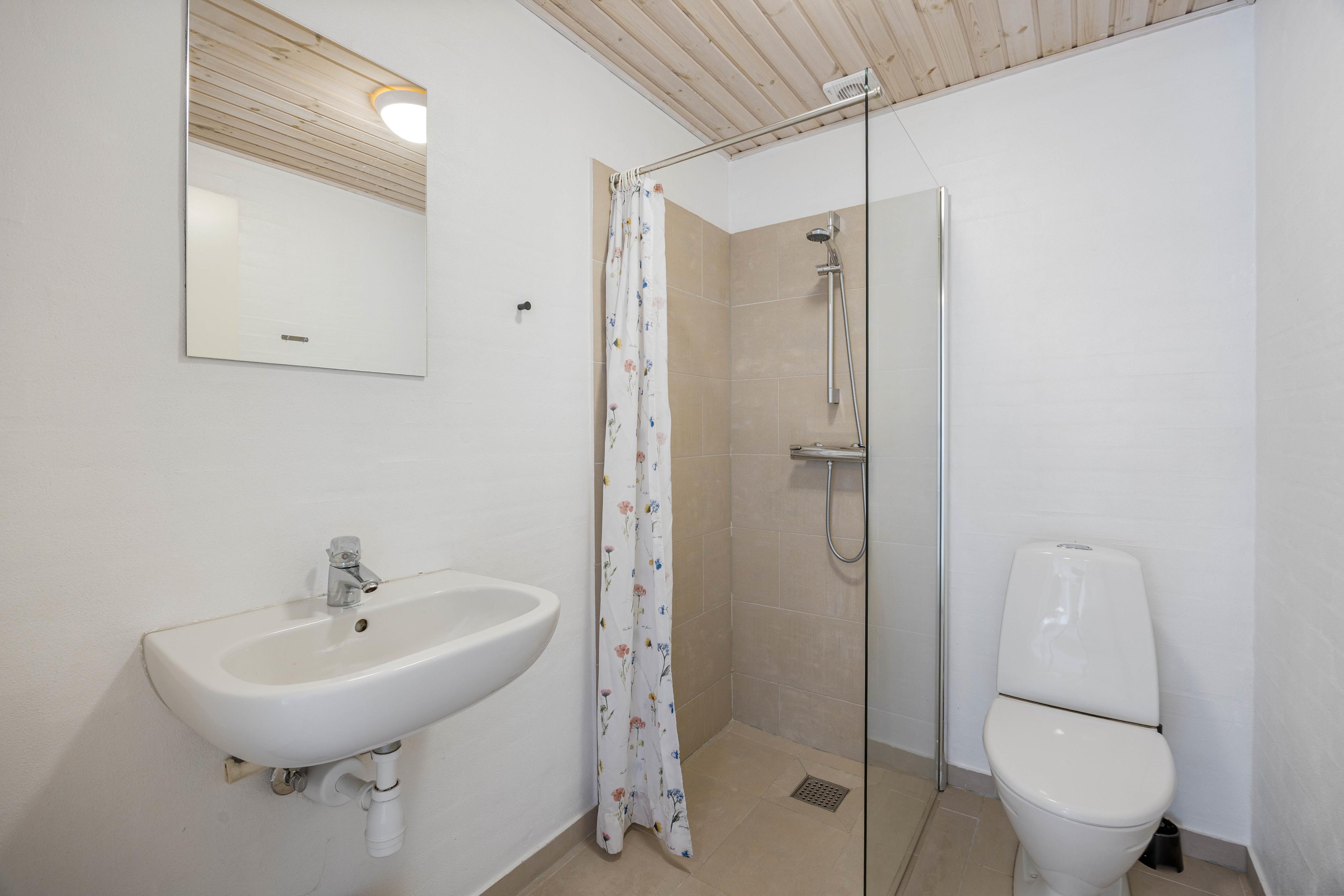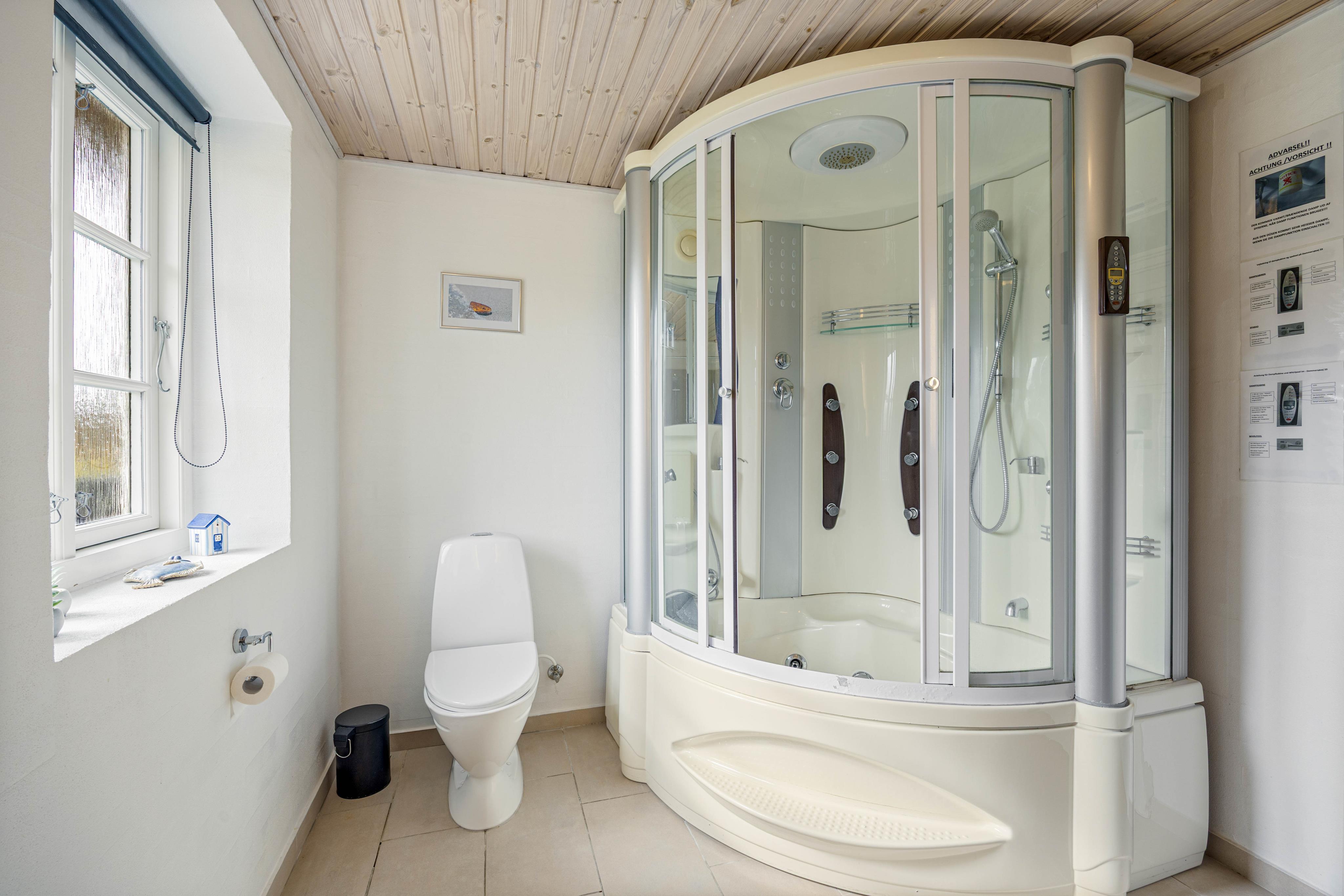 Wenn ihr eine kleine Pause vom Familientrubel benötigt, dann könnt ihr euch in eines der 5 Schlafzimmer zurückziehen. Die Schlafzimmer sind mit jeweils 3 Doppelbetten, 2 Einzelbetten und 2 Etagenbetten ausgestattet und laden zum Träumen ein. Es gibt 2 Badezimmer im Ferienhaus, welche mit einer Fußbodenheizung beheizt werden. In einem Badezimmer befindet sich eine Kombimaschine aus Waschmaschine und Trockner.